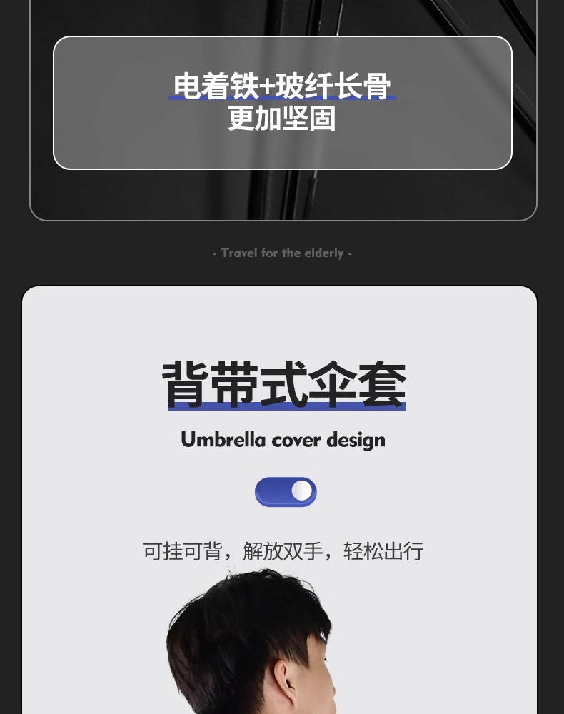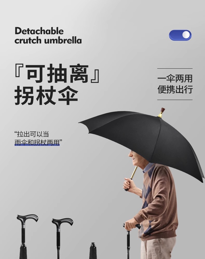 这款产品真的是太棒了,它结合了雨伞和拐杖的功能,非常实用。流线型的伞柄设计,不仅美观,还增强了使用手感。抗风伞架的设计,可以有效地抵御风雨天气,让使用者更加安心。防滑伞尾的设计,增加了使用者的安全保障。