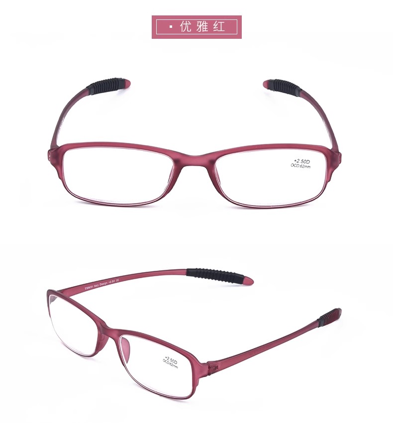 此外,这款老花镜还有经典黑和优雅红两种颜色供选择,能够满足不同人群的审美需求。无论是在家中、外出旅行还是办公室使用,这款老花镜都能够为您提供极好的视觉体验和佩戴体验。