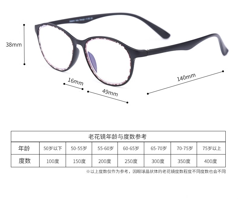 品牌:GH/冠豪 颜色分类:黑色茶色红色150度200度250度300度350度400度下单备注度数 产品类型:老花镜