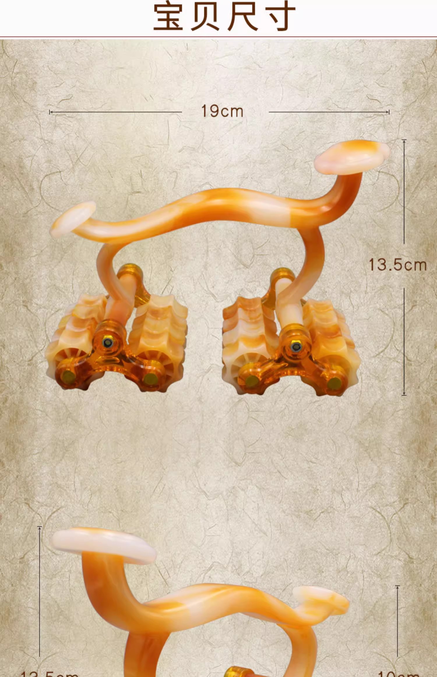 该按摩器的把手设计为玉如意形状,寓意吉祥如意,同时美观大方,让整个产品看起来更加高贵和精致。