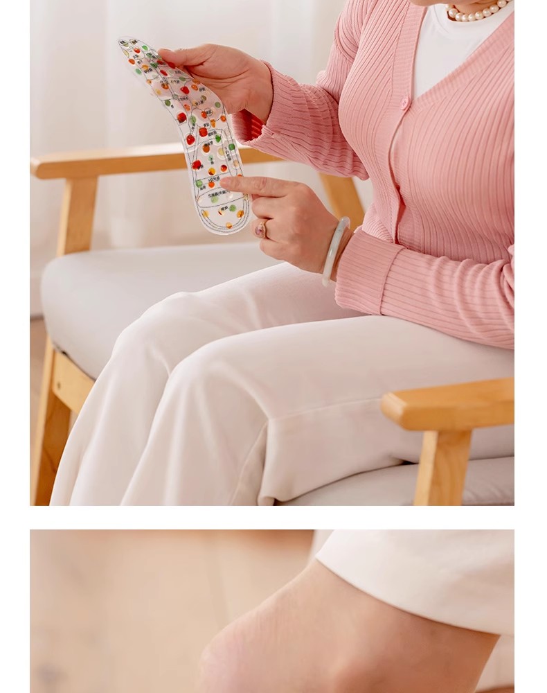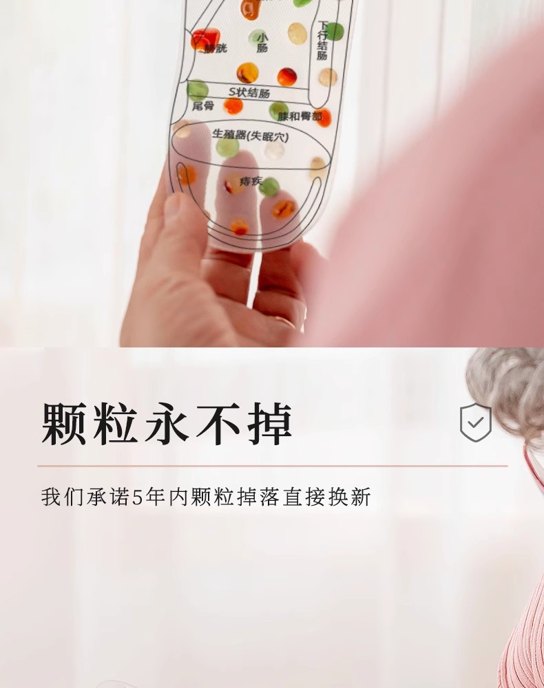 这款足底按摩垫采用了天然玛瑙石,经过精良的做工和精选的原石色,与鞋垫完美融合,形成了一款既美观又实用的足底按摩器。这种按摩垫圆润不伤皮肤,让用户可以放心使用,同时享受到舒适的按摩体验。