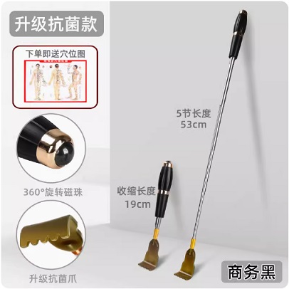 品牌:爱吾献 颜色分类:【升级抗菌款】商务黑-树脂爪19-53cm\5节\送穴位图 产品类型:痒痒挠
