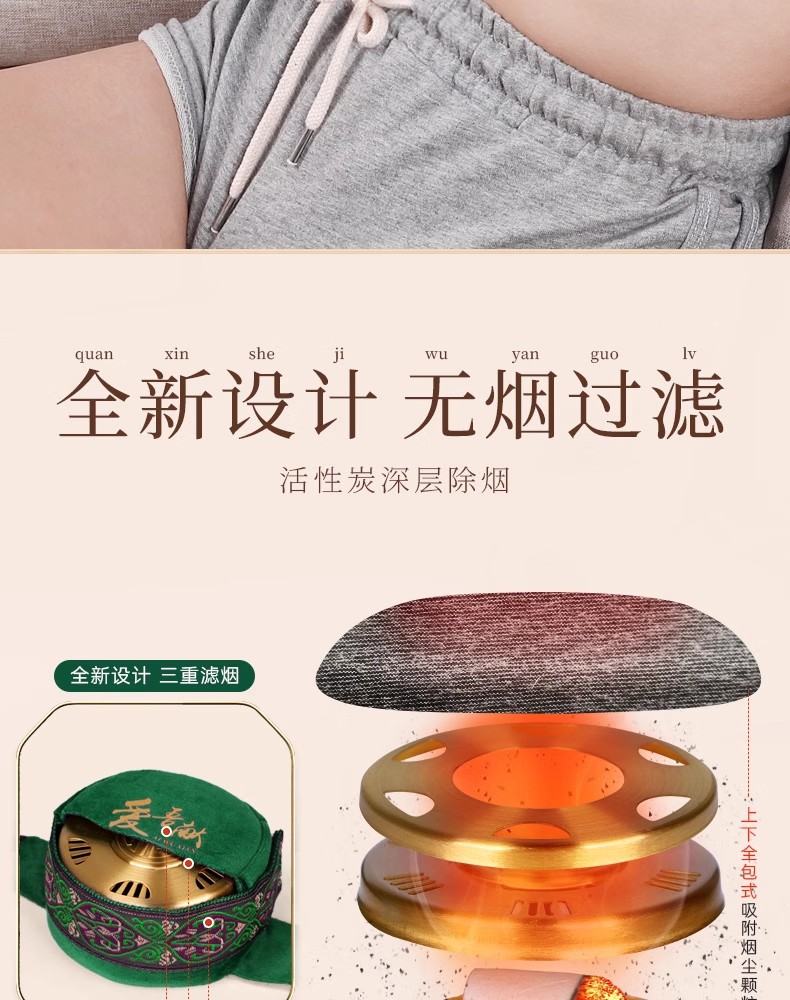 此外,这款无烟艾灸盒还具有无烟设计,可以有效避免烟熏和异味,让艾灸更加舒适和健康。它的外观设计简洁大方,可以很好地融入家居环境中。