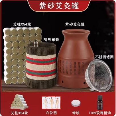 品牌:爱吾献 颜色分类:紫砂罐+艾柱*54+穴位图+10ml精油+蜡烛 产品类型:艾灸盒