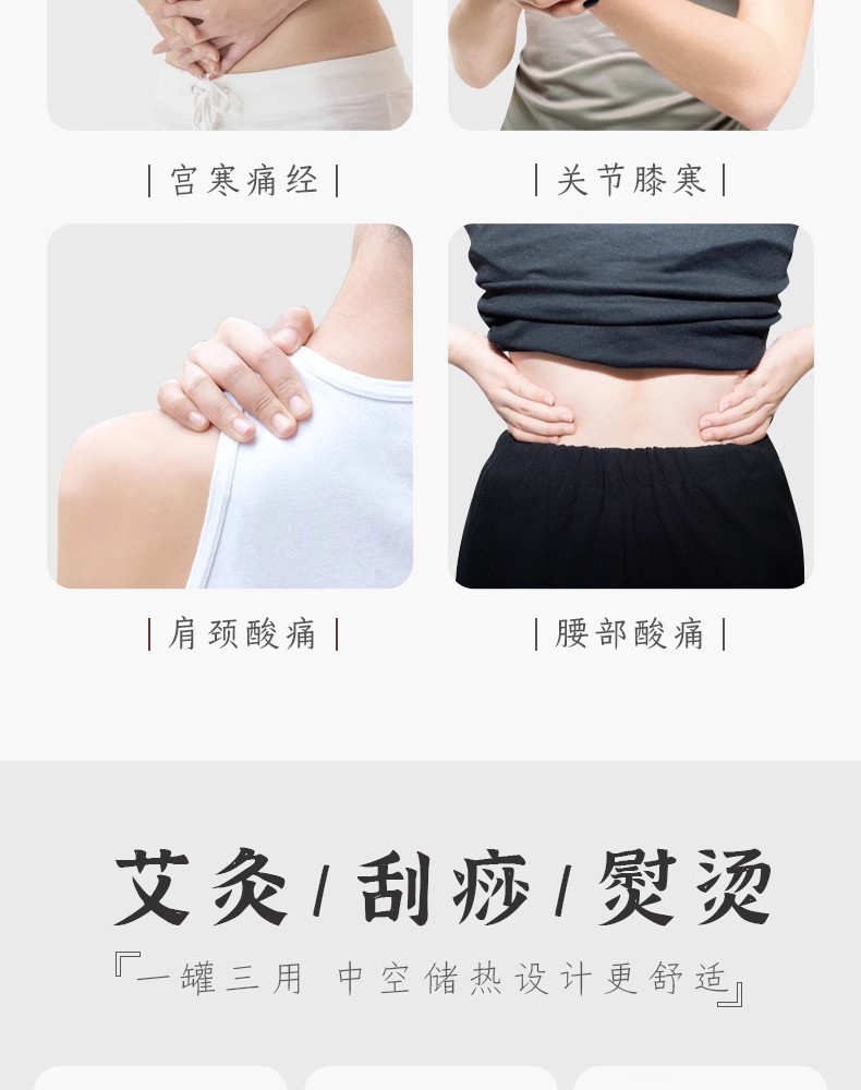 这款艾灸盒每天都可以使用,长期坚持使用可以告别身体不适,提高身体健康水平。它的设计非常人性化,一罐三用,可以同时进行艾灸、拔罐和温灸,非常方便实用。
