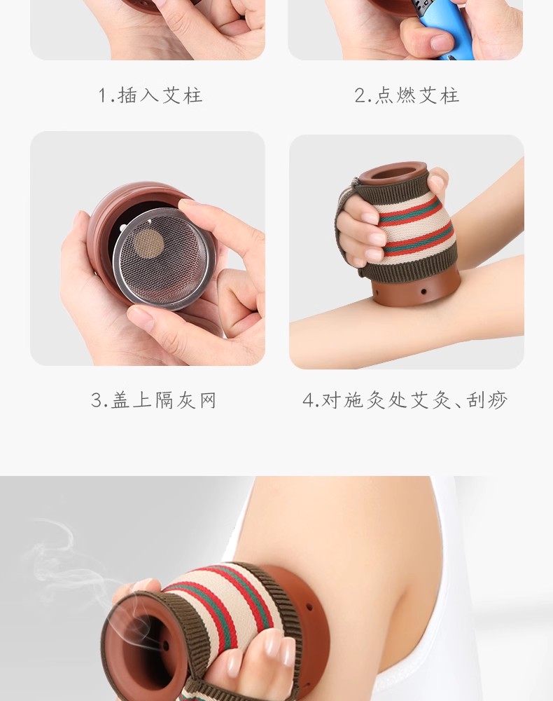 这款艾灸盒是一款非常实用且方便的养生产品。它采用双层紫砂材质,具有隔灰钢网和隔热布套的设计,可以有效地防止艾灸过程中的热量和灰尘对皮肤的伤害。同时,它的中空储热设计可以让艾灸更加舒适,不会因为过热而感到不适。