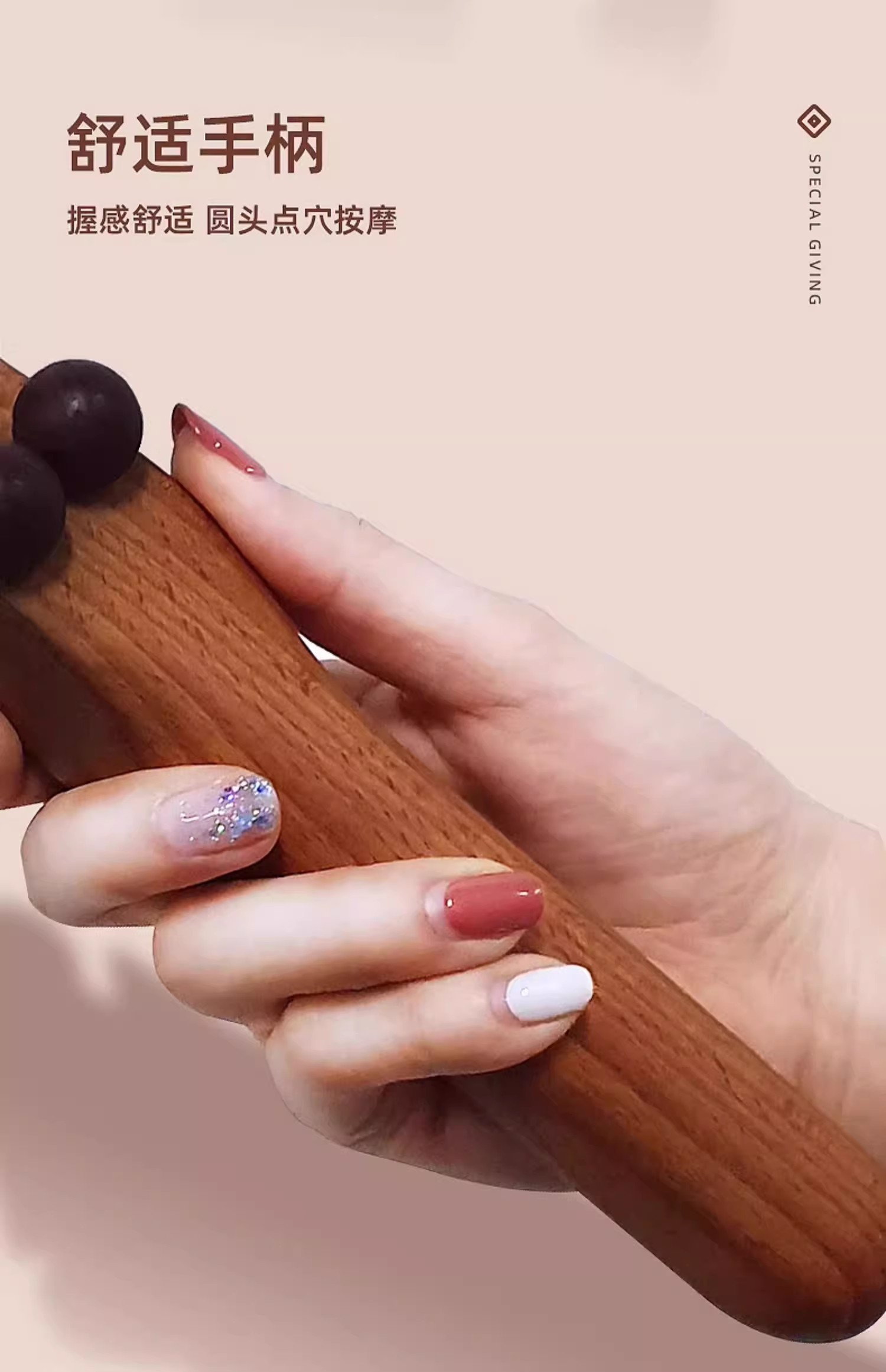 该擀筋棒的凸点指压按摩设计可以有效地按摩身体的同时直达穴位,出痧快,刮感明显,为您带来舒适的按摩体验。