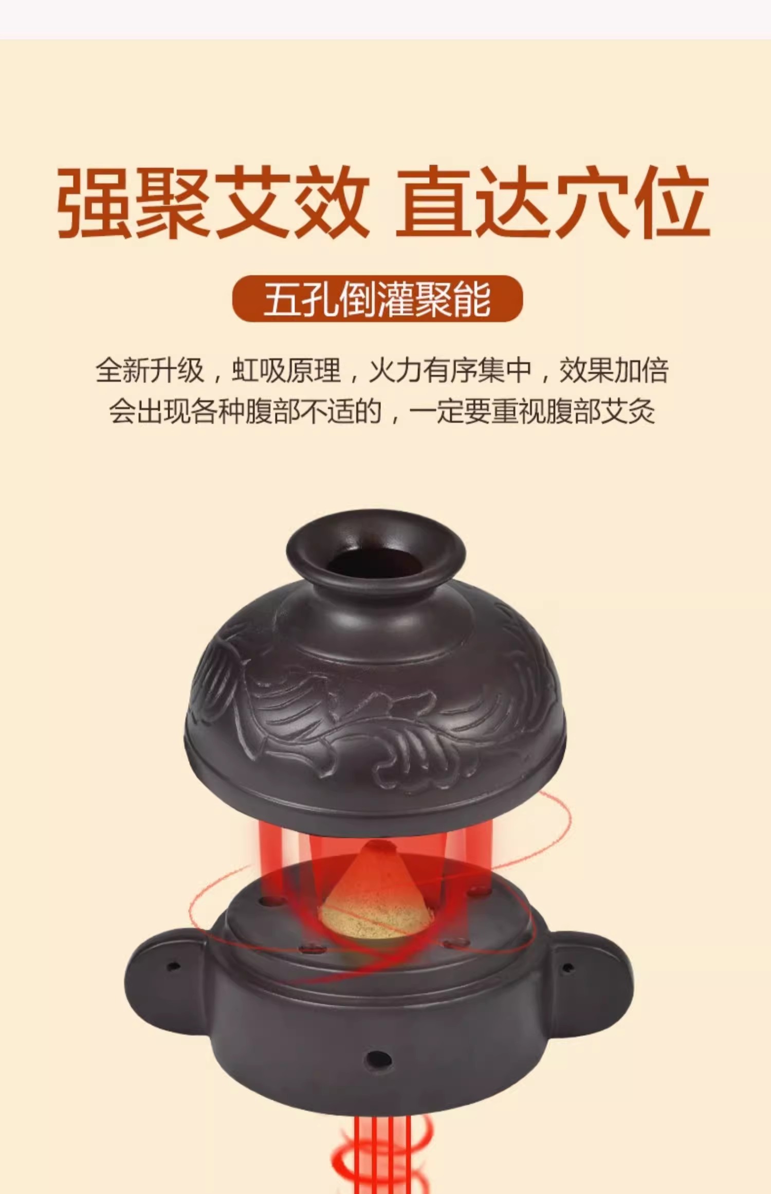 脐灸罐的腰部艾灸功能可以有效地缓解腰部酸痛和不适,让您告别腰痛的困扰。它的艾塔孔大小适中,能够让火力有效地集中,提高治疗效果。