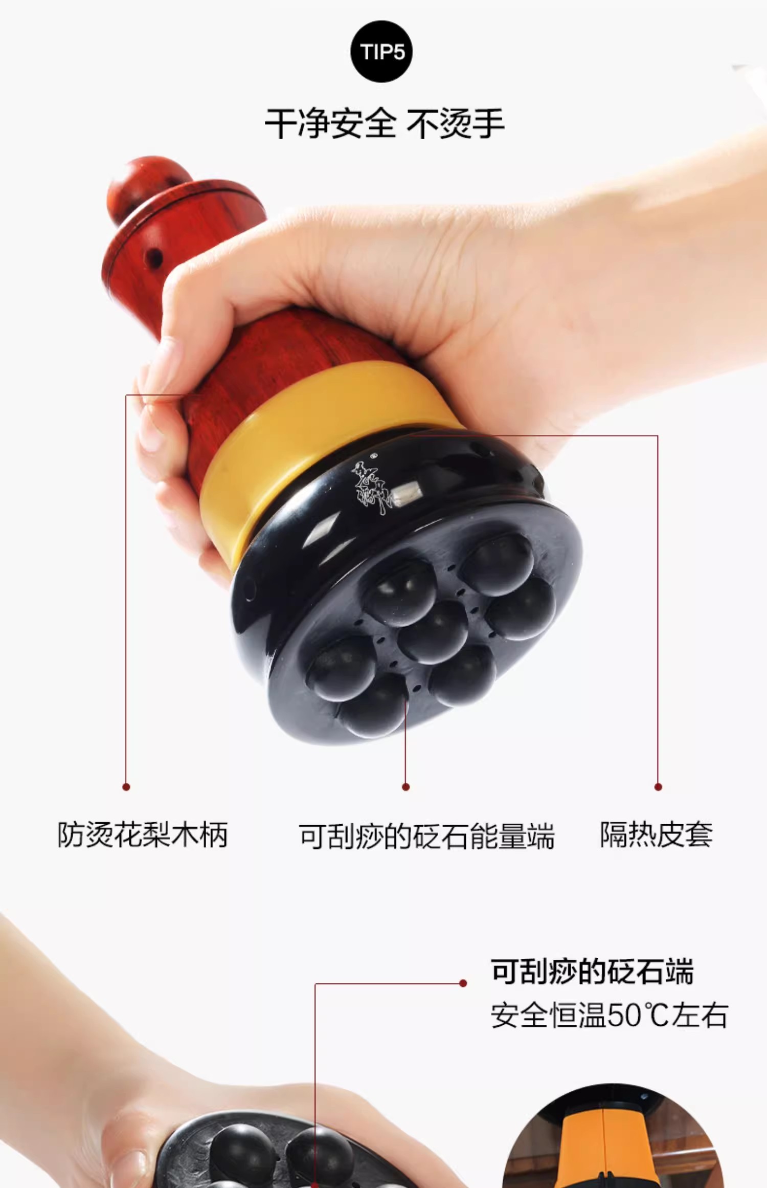 这款砭石刮痧艾灸罐的设计非常人性化,易于操作且不会烫手,让用户更加安心地使用。
