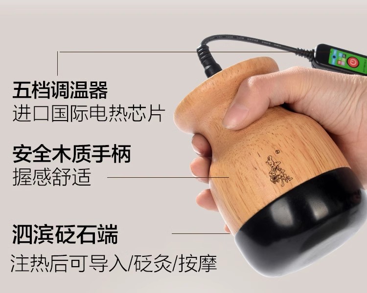 这款砭灸仪电热温灸器是一款高品质、实用且舒适的保健仪器。它采用了进口国际电热芯片,具有五档调温功能,能够满足不同的温度需求。安全木质手柄的设计,不仅美观,还提供了握感舒适的手感。