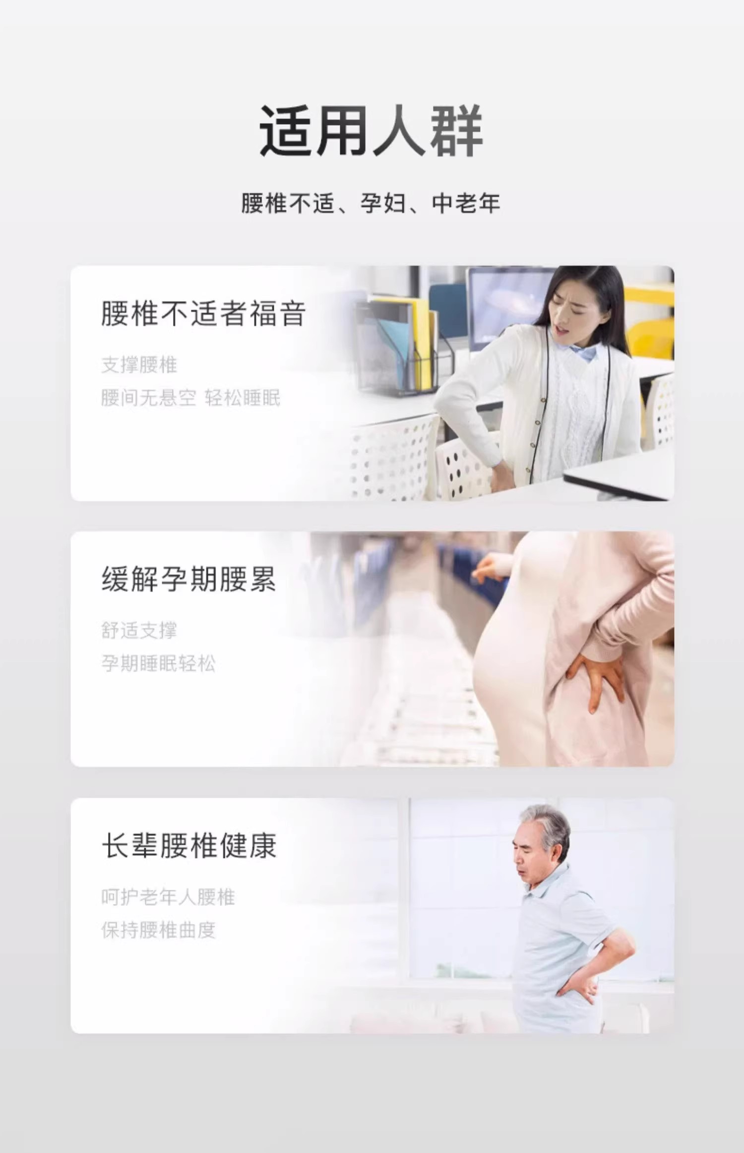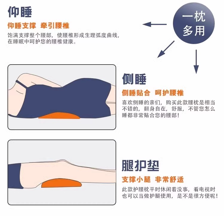 这款腰垫枕头不仅可以放在腰部使用,还可以放在小腿或膝盖下使用,起到较好的支撑放松作用。对于孕妇、家人和朋友来说,都是一款非常实用和体面的礼物。