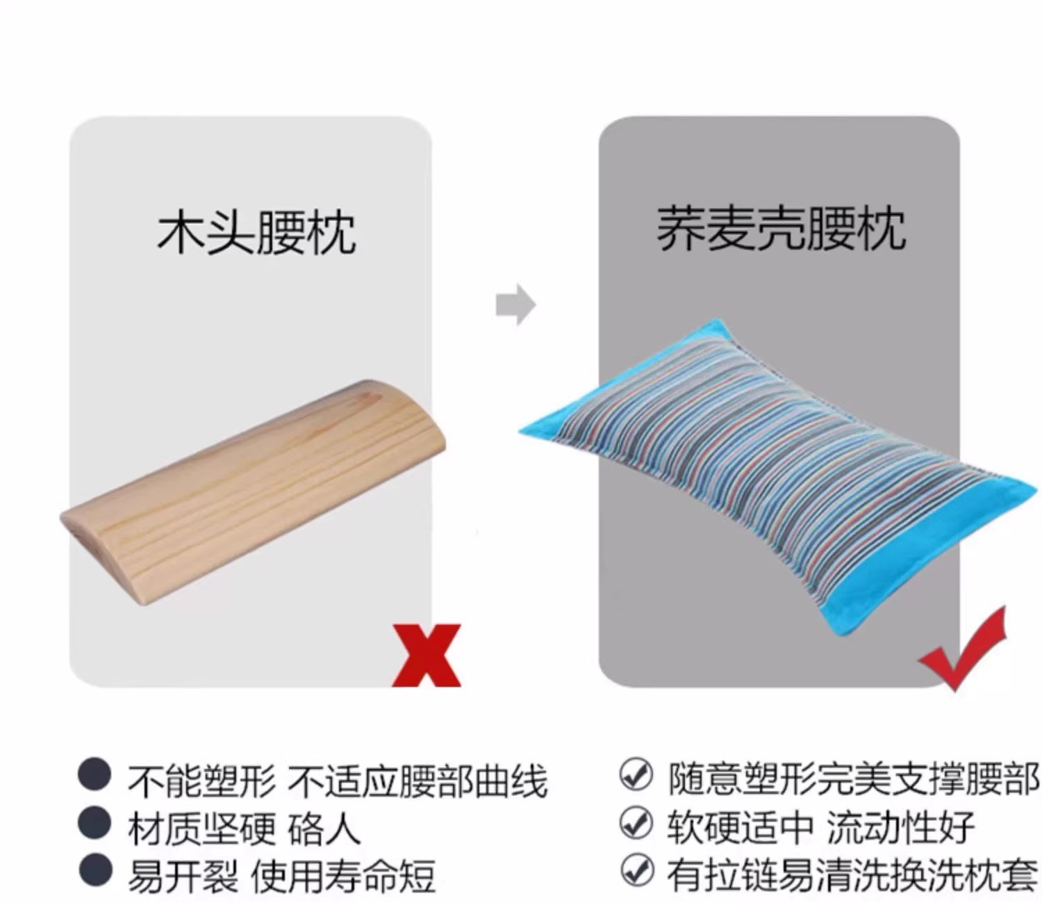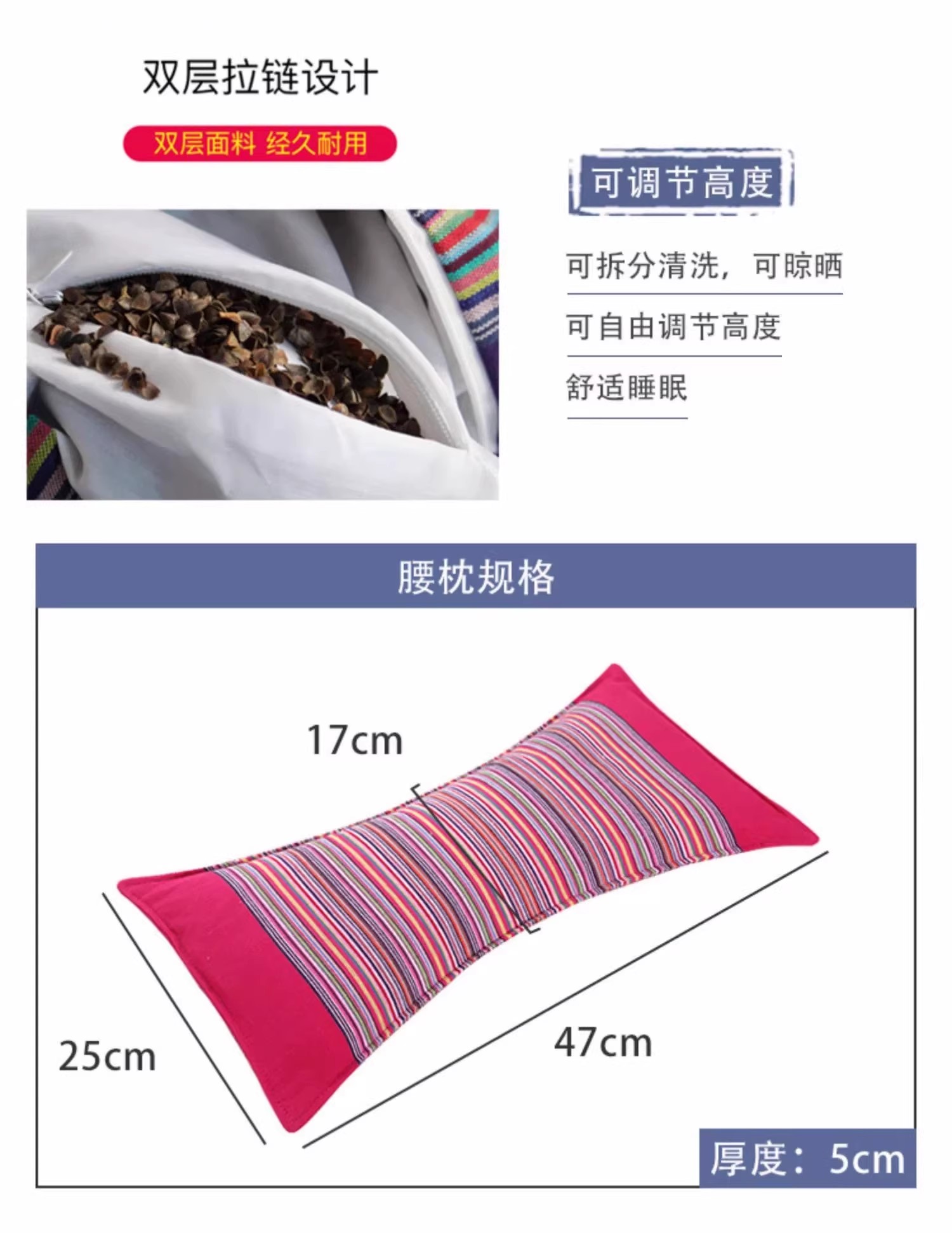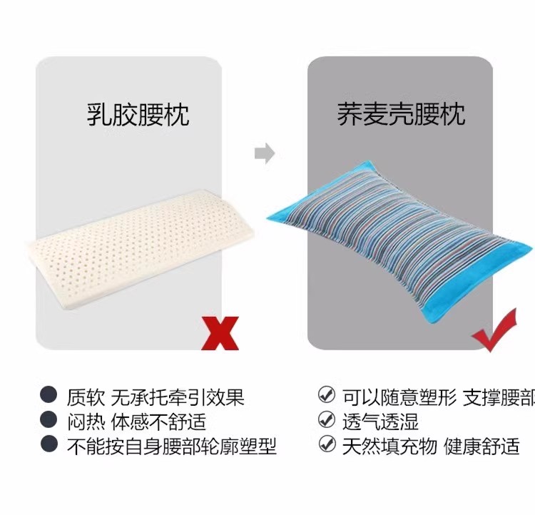 这款腰垫枕头采用纯棉面料,具有良好的透气性和吸湿效果,能够保持干燥清爽。精选天然优质荞麦壳填充,不仅具有很好的支撑作用,还能有效放松腰部和小腿。