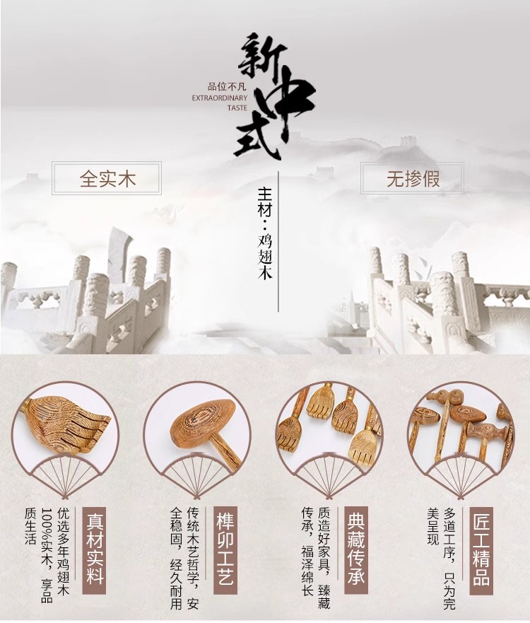 这款痒痒挠的用料非常厚实,给人一种扎实、稳重的感觉。在制作过程中,工匠们对木材进行了精心的挑选和处理,确保其质量和稳定性。