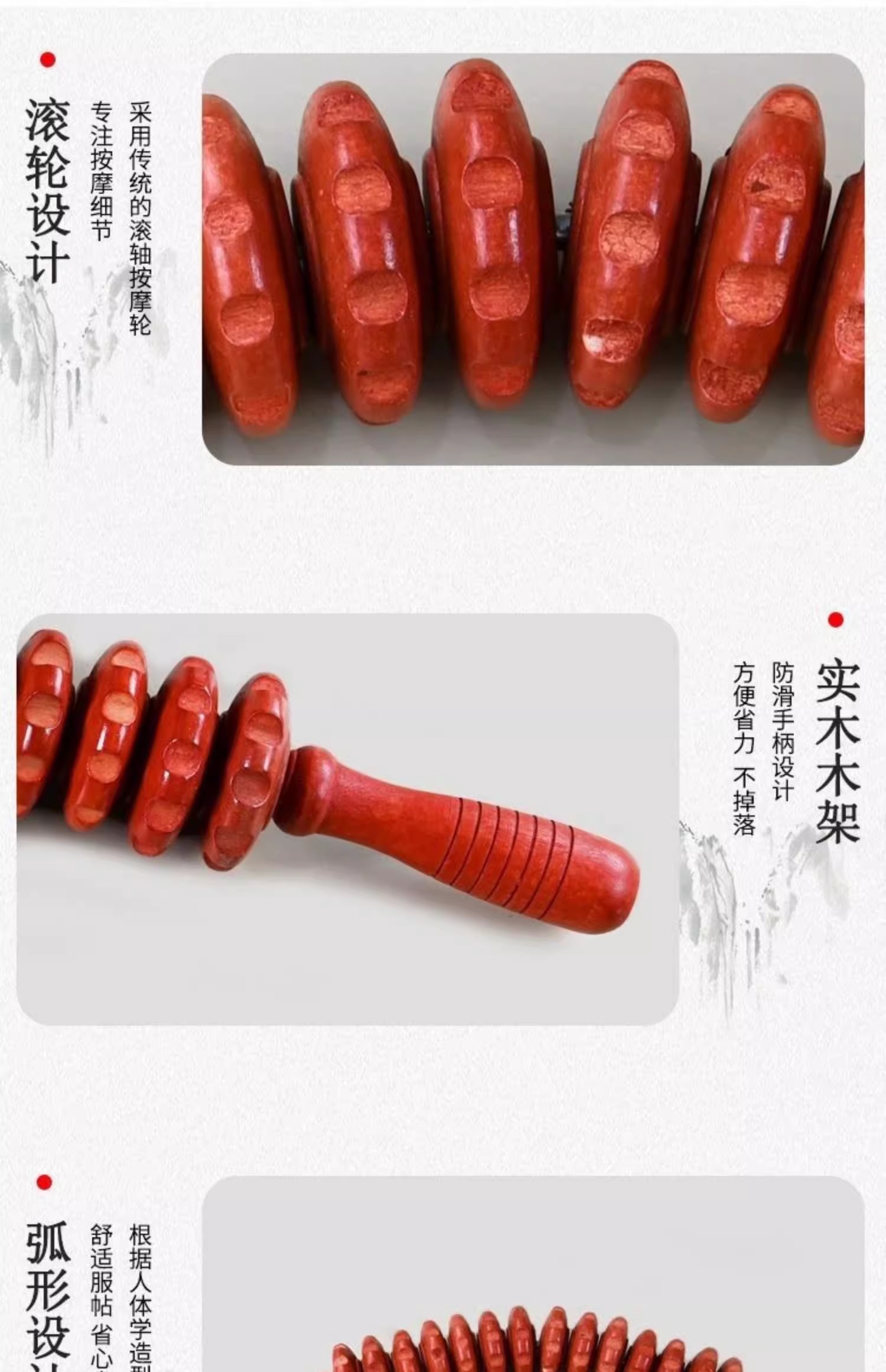 这款擀筋棒采用了传统的滚轴按摩轮设计,专注于按摩细节,能够有效地缓解肌肉紧张和疼痛。防滑手柄设计,方便省力,不会掉落,让你在使用过程中更加稳定和舒适。