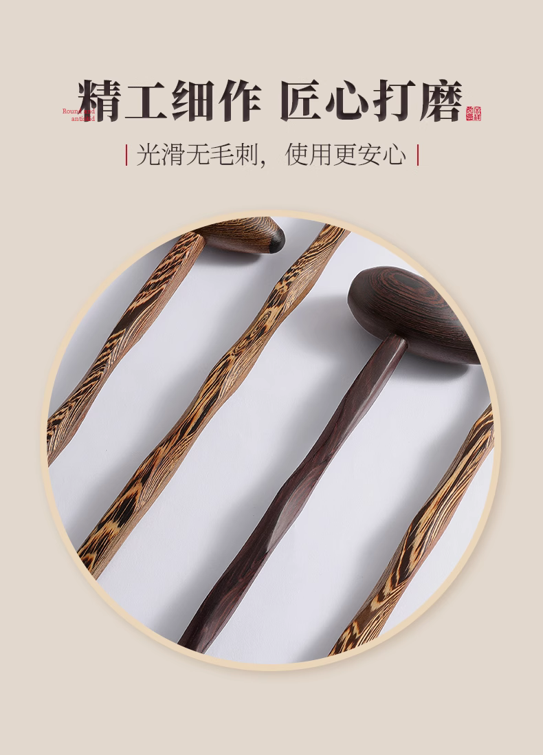 这款鸡翅木按摩锤确实是一款非常精致且实用的产品。其精工细作,匠心打磨,确保了产品的质量和舒适度。光滑无毛刺的设计不仅让使用体验更加顺畅,也避免了可能对身体造成的不适。