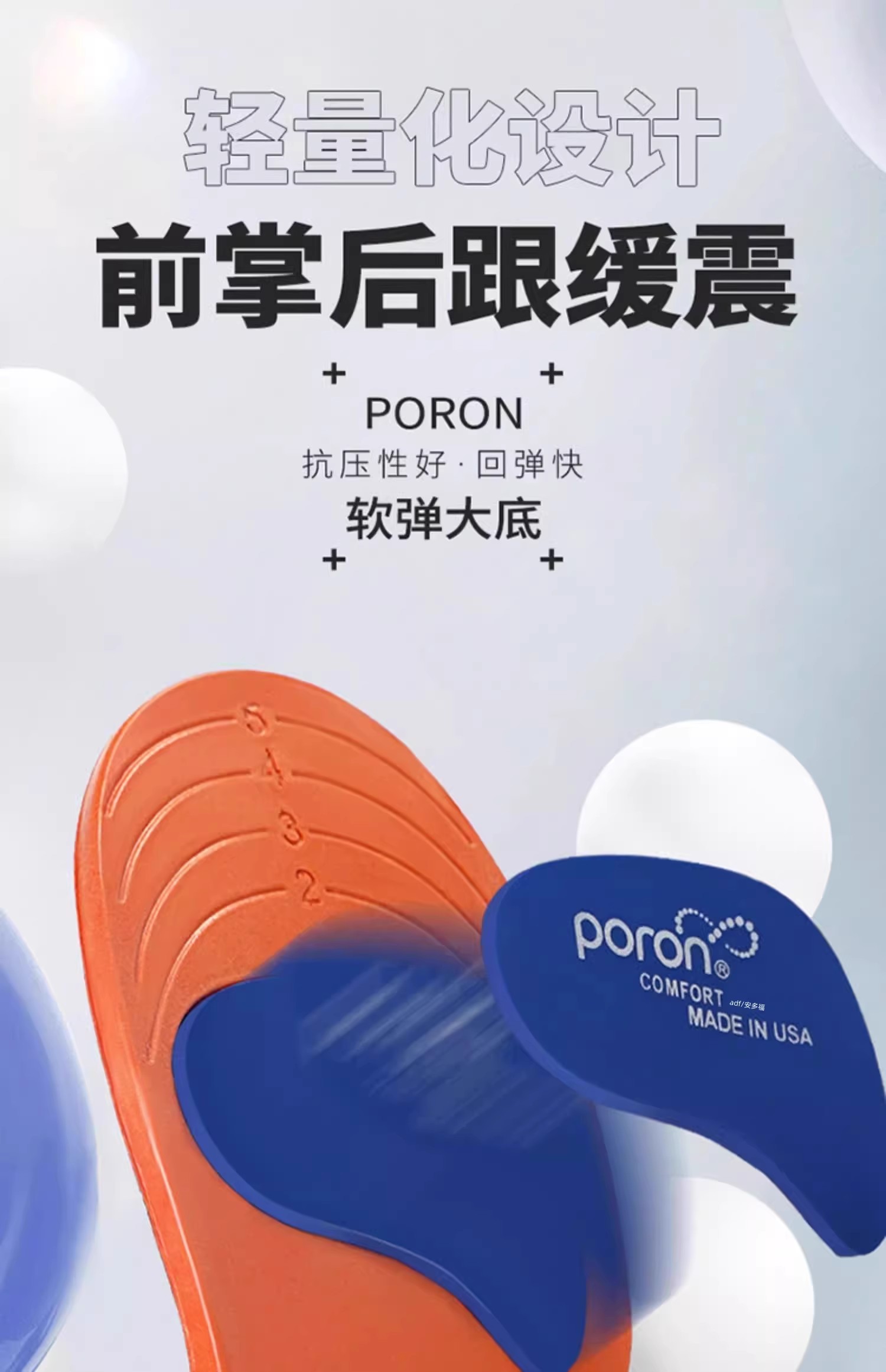 这款鞋垫的前掌部分采用了缓震设计,可以有效地吸收脚掌受到的冲击力,减少脚部的疼痛和不适。同时,鞋垫的后跟部分也采用了缓震设计,可以有效地缓解脚跟的疼痛和不适。这种设计可以提供更好的脚部保护,减少脚部的疲劳和受伤。
