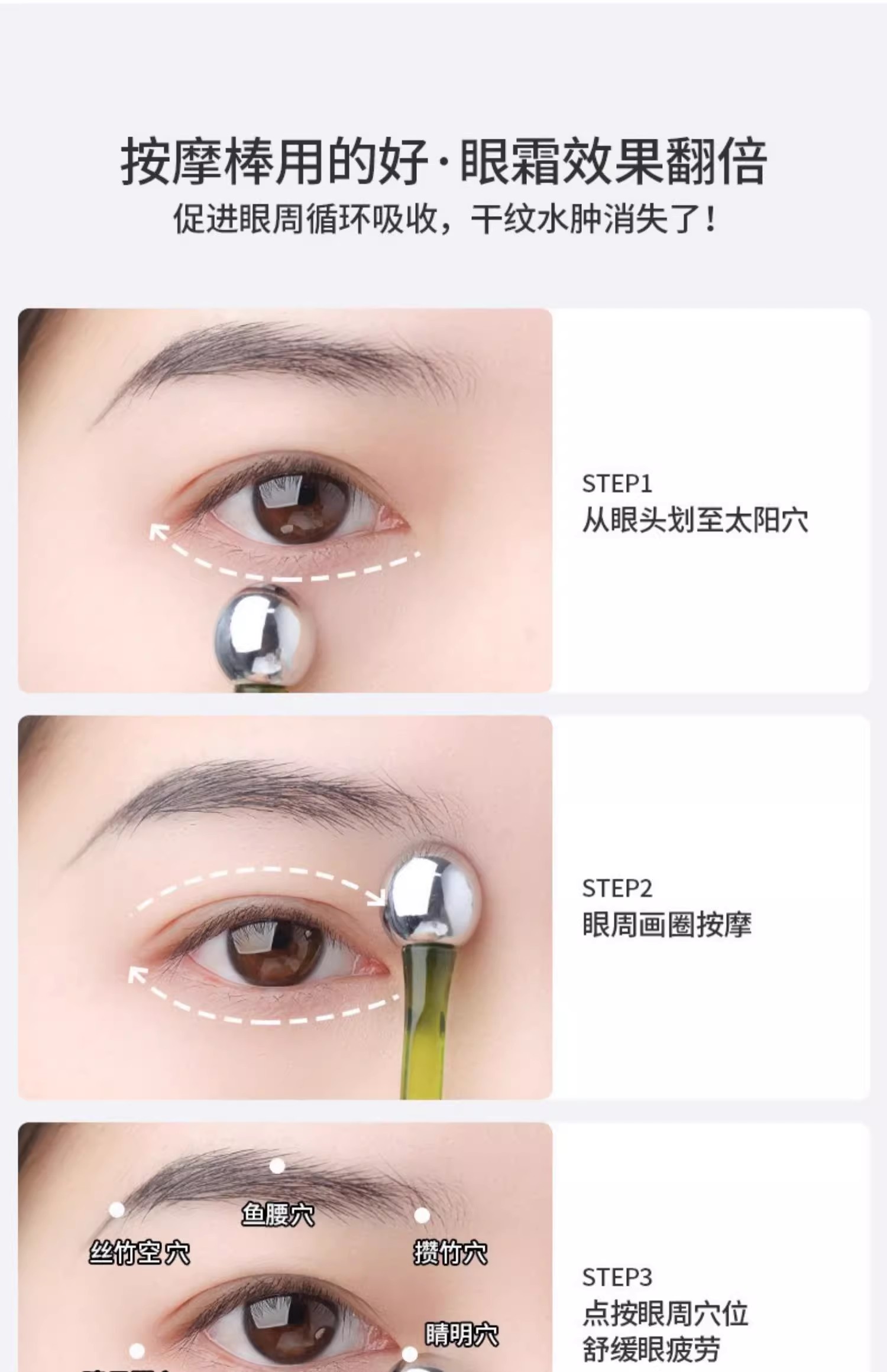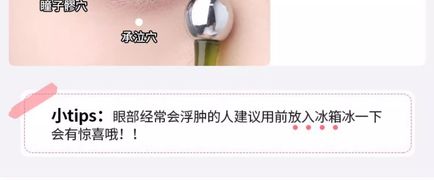 这款眼部按摩仪采用优质不锈钢材质,不会对皮肤造成伤害,可以放心使用。它具有一头按摩,一头挖取的设计,搭配使用能够事半功倍,有效缓解眼部疲劳和不适。