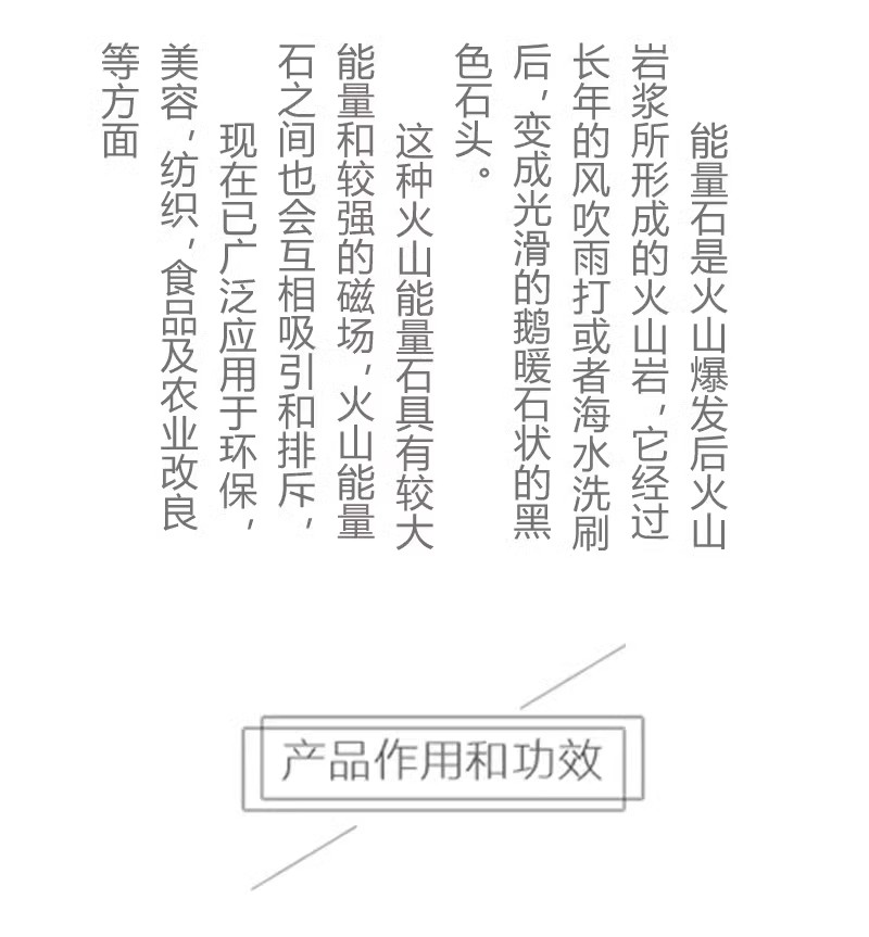 这款养生能量石是由火山爆发后形成的火山岩浆经过长年的风吹雨打或海水洗刷后形成的鹅暖石状的黑色石头。它具有舒缓压力、缓解腰酸背痛、四肢冰凉等症状的功效。