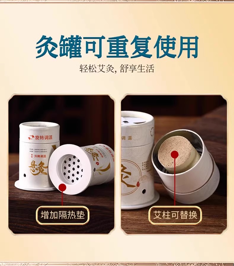 这款艾灸盒采用了古法悬灸的方式,通过简型聚能防护设计,将艾条的灸火直接作用于穴位,实现深度养生。它小巧便携,可以循环使用,让你随时随地享受舒适的艾灸体验。