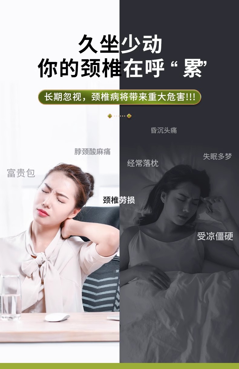 这款颈椎枕传承了本草良方,采用天然草本材料制作而成。粗盐和艾包都是传统的中草药成分,具有舒筋活络、祛湿散寒的功效,能够有效地缓解颈椎疼痛、僵硬和活动受限等不适症状。