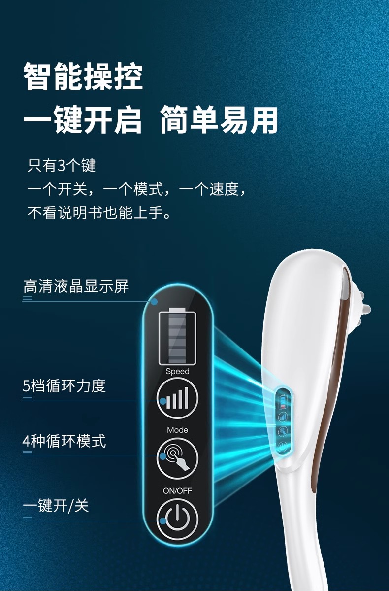 此外,这款敲打锤还具有五档强度调节功能,您可以根据自己的需要随心控制按摩的力道,享受到个性化的按摩体验。