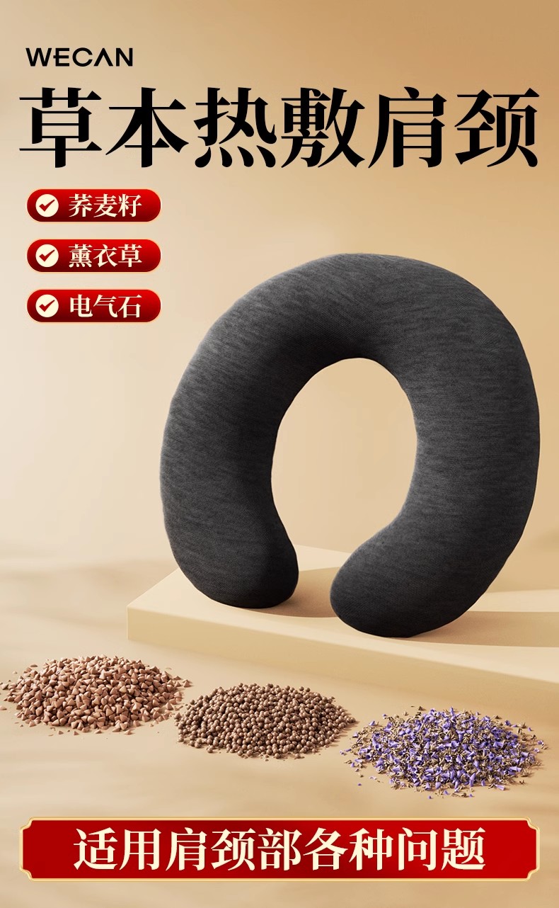 这款颈部草本热敷包是一款专门针对肩颈部问题而设计的护理产品。它添加了荞麦籽、薰衣草等天然草本成分,以及电气石等矿物质成分,具有深层热敷和缓解颈椎疲劳、疼痛的功效。
