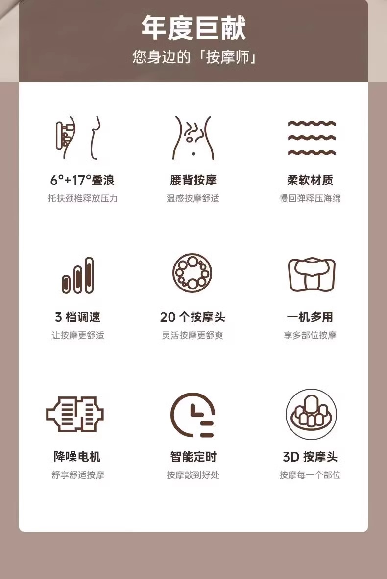 品牌:Inayou/艾纳优 颜色分类:【常规款】插电使用+3档力度调节+红光热敷+20头正反揉捏+6键控制 产品类型:按摩器