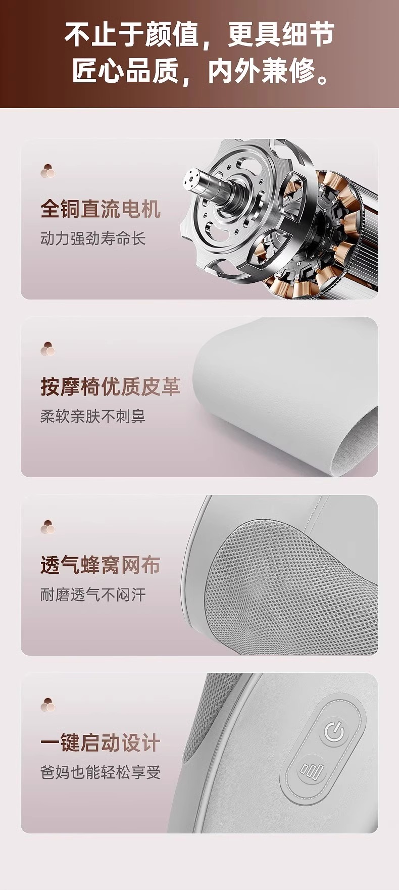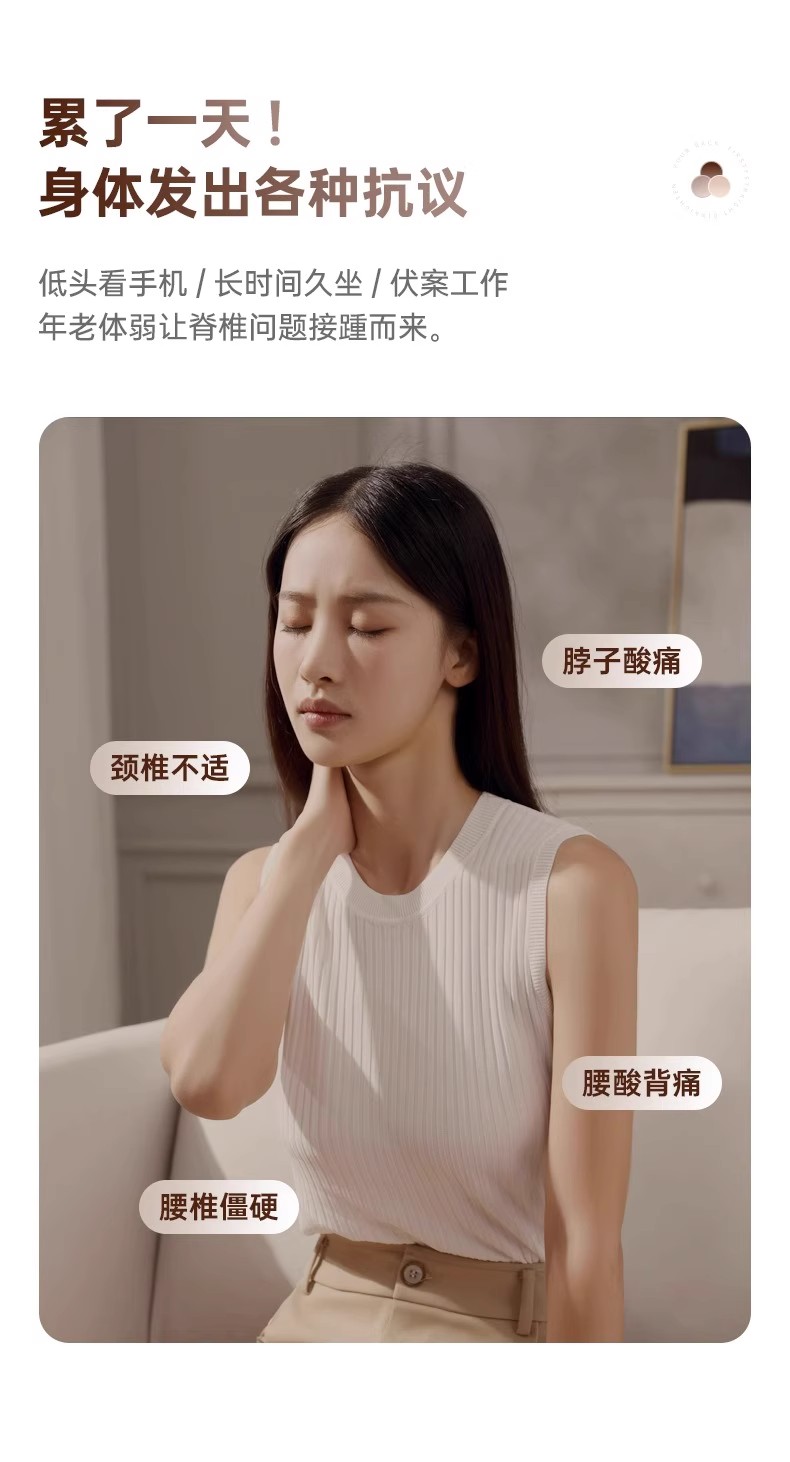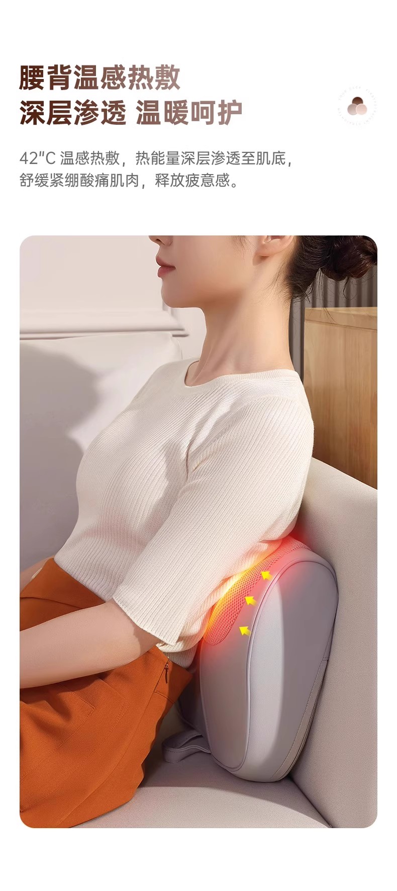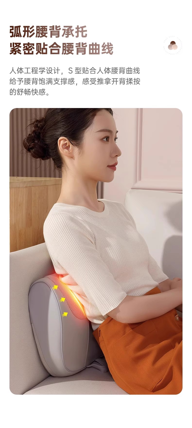 该按摩器采用人体工程学设计,完美贴合人体腰背曲线,给予腰背饱满的支撑感。使用时,您将感受到推拿开背揉按带来的舒畅快感,仿佛亲身遇见专业按摩师进行专业护理。