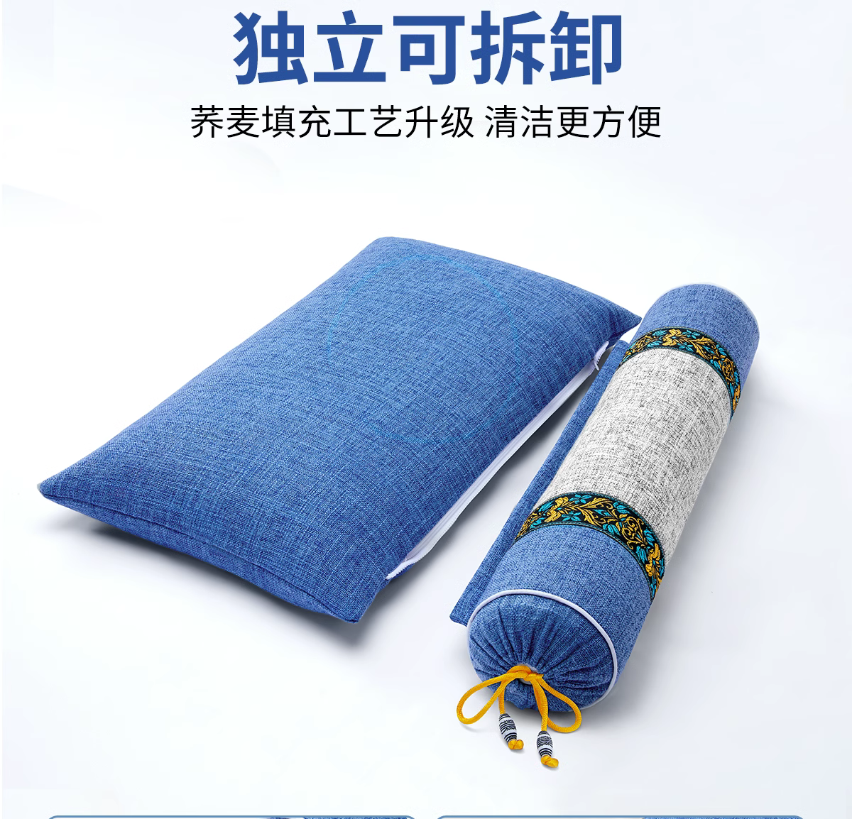 品牌:罗绵 颜色分类:基础款 艾草荞麦护颈椎 雅典蓝(送枕套) 产品类型:护颈椎助睡眠专用枕头