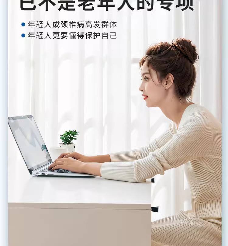 这款颈托护颈脖套是一款专为现代人设计的颈部护理产品,旨在帮助用户缓解颈椎压力,提供舒适的佩戴体验。采用高弹性材料,为颈部提供适度的缓冲和支持,有效减轻颈椎压力。在保持整体美观的同时,透气孔设计能够保持颈部清爽,避免闷热和汗湿感。产品采用轻量化材料,既保证了支撑效果,又减轻了佩戴时的负重感,方便携带。