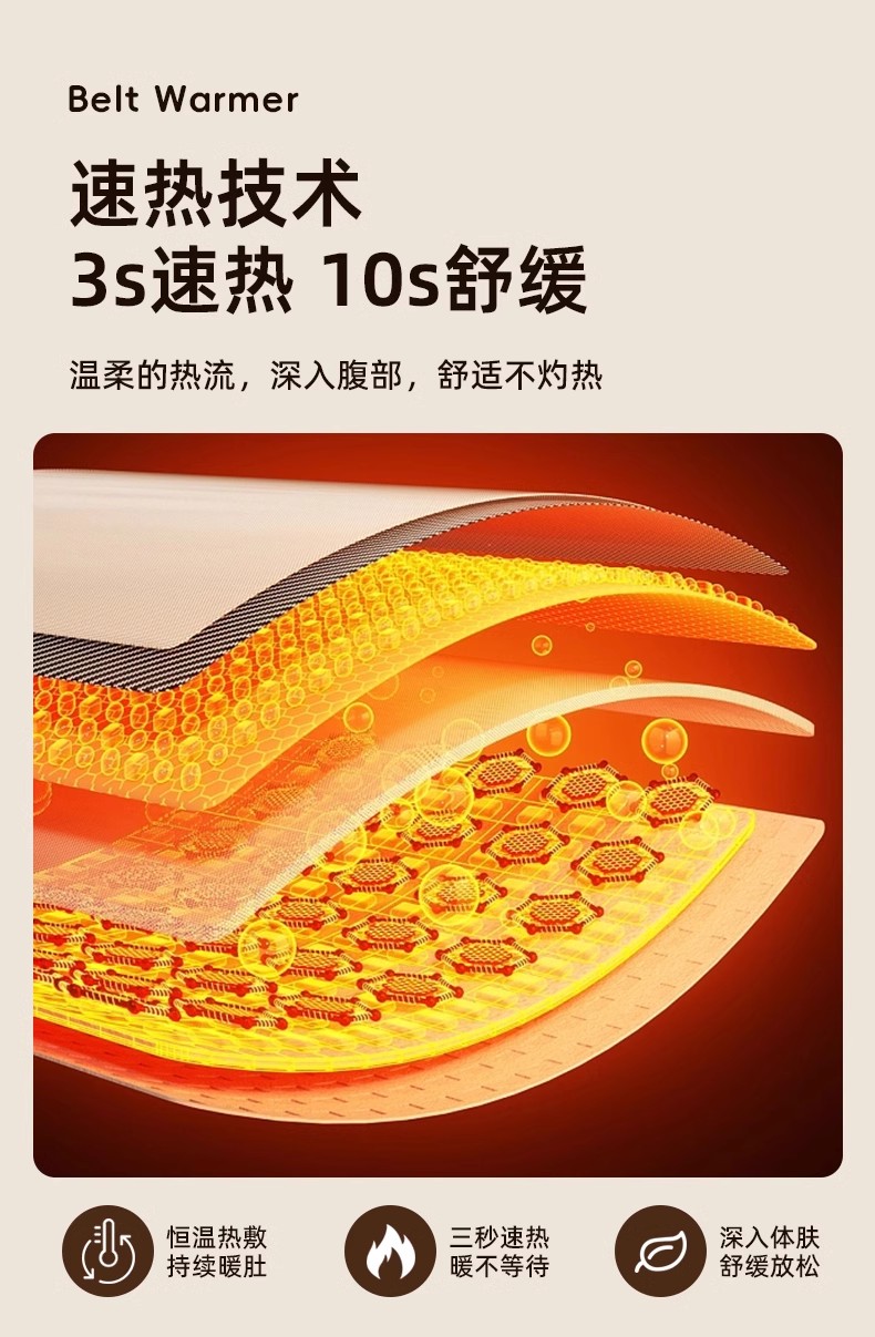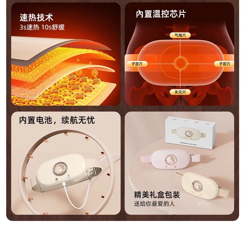 这款暖宫腰带采用了无线设计,方便携带,无论何时何地都能提供温暖和舒适。它具备恒温热敷功能,温度适中,不会过热也不会过冷,恰到好处地温暖腹部。