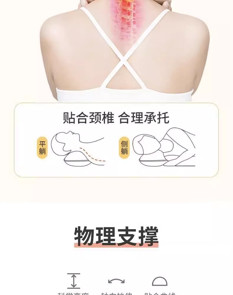 除了优质的填充材料,这款颈椎枕还特别注重舒适性和实用性。枕套采用亲肤棉材质,触感柔软,贴合颈部曲线,让你在享受舒适睡眠的同时,也能保护颈部不受凉。