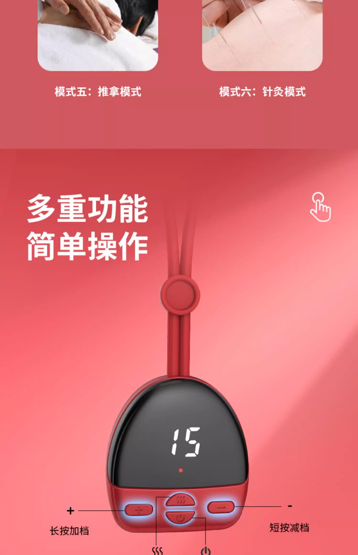 品牌:玫圣雅 颜色分类:红色【6种模式 15档力度 3档加热】 产品类型:吊坠颈椎按摩仪