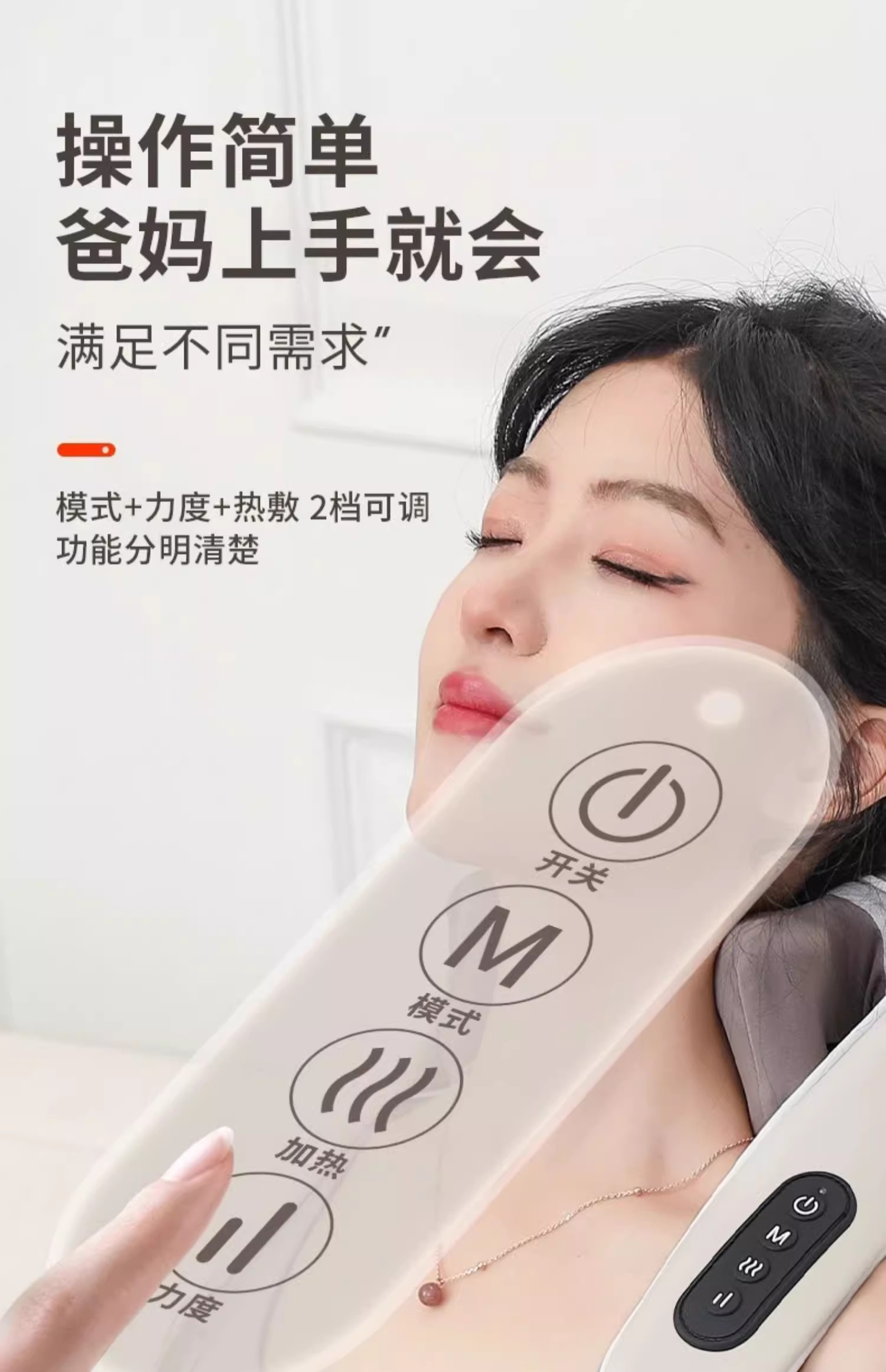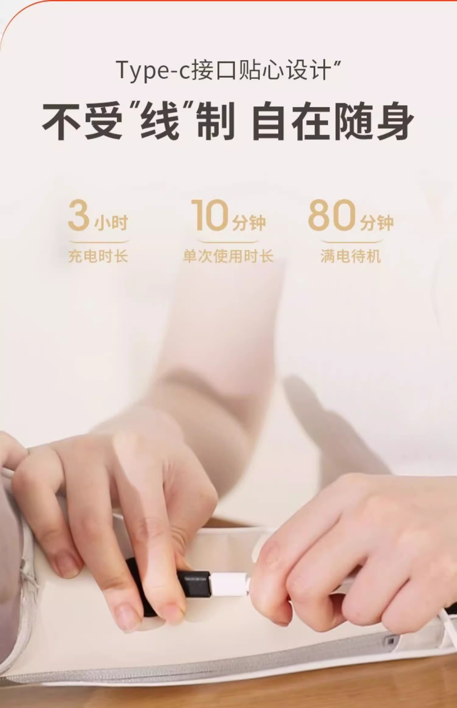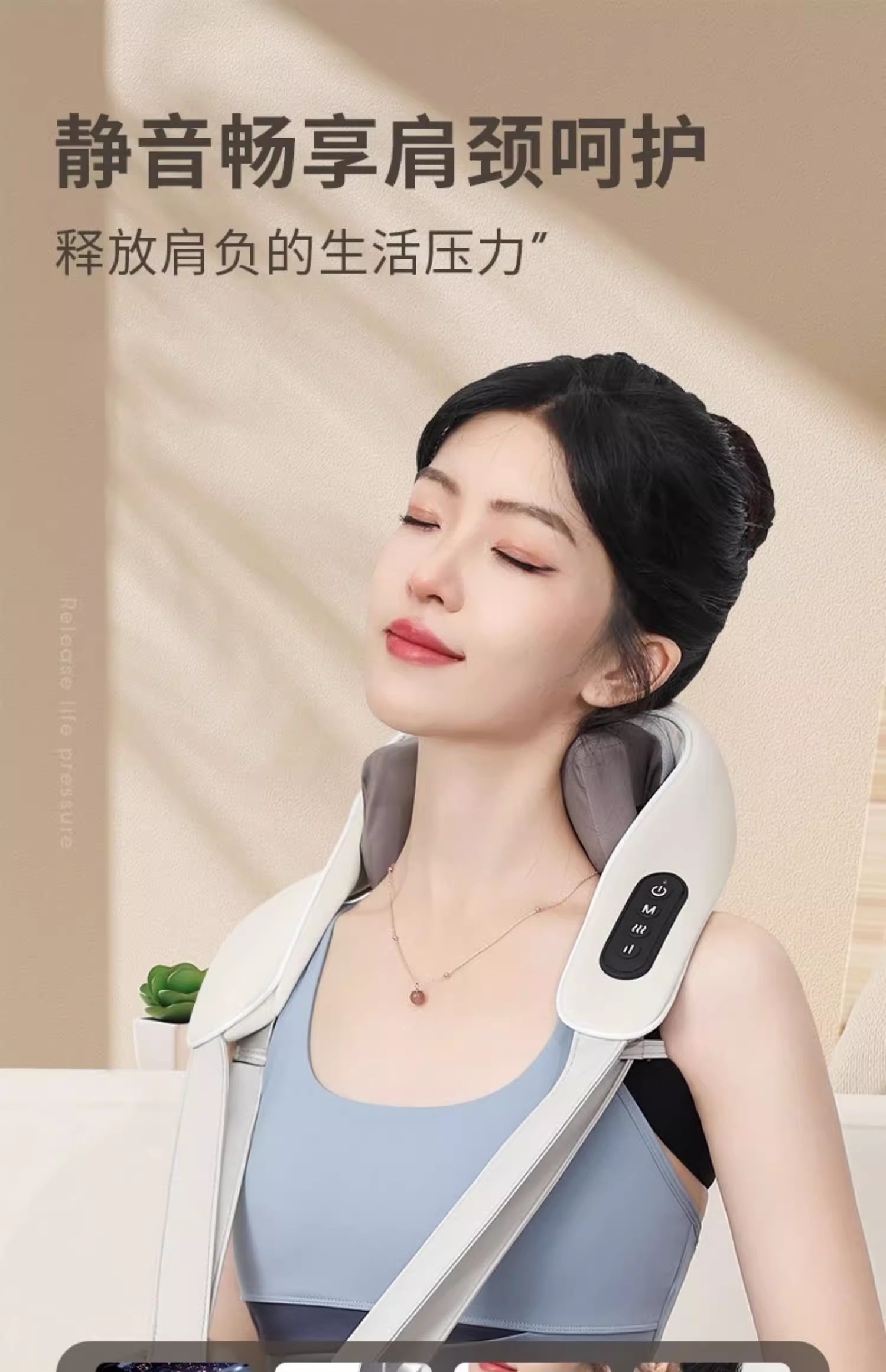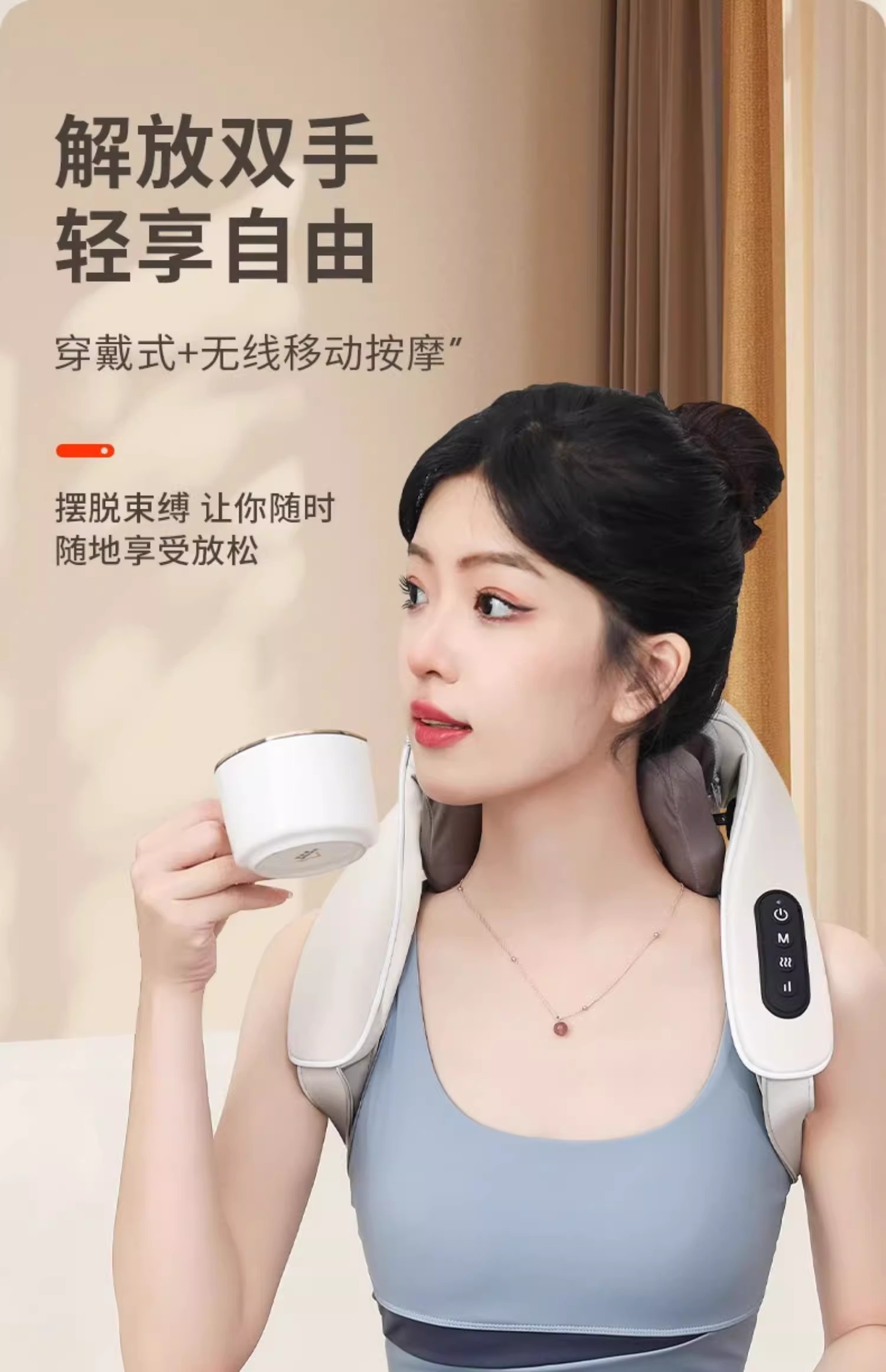 穿戴式设计使这款按摩器使用方便,无线移动按摩功能让你在享受放松的同时,彻底解放双手。