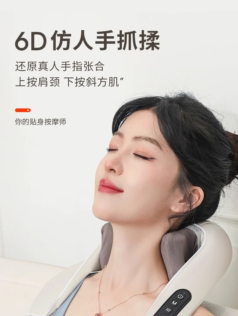 这款颈椎按摩器拥有6D仿人手抓揉技术,完美还原真人手指的张合动作,为肩颈和斜方肌提供精准的按摩。其填充依靠空腰的设计,让腰部得到更深入的放松与舒适。