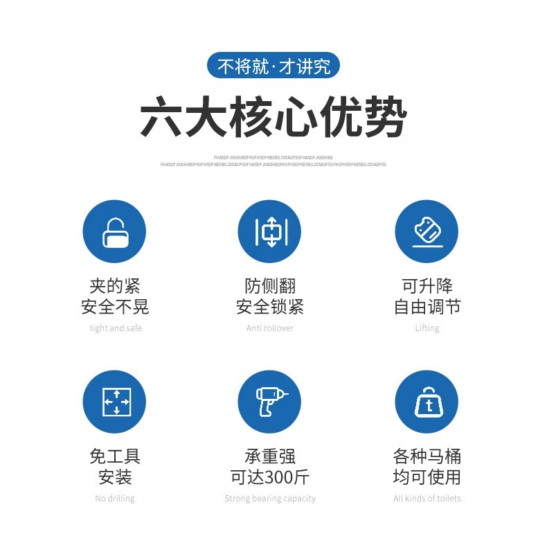 这款马桶扶手架子经过夹片升级,稳固性得到了极大提升。其夹片锁住马桶的原理,通过增加夹片压力,将马桶两边紧密夹紧,确保了稳固的支撑。采用汽车级橡胶材质,加大吸盘,具备良好的固定性和防滑耐磨性能,为用户提供更加安全的使用体验。此外,扶手的设计遵循人体工学原理,使受力更加均匀,即使单手起身也不必担心摔倒。