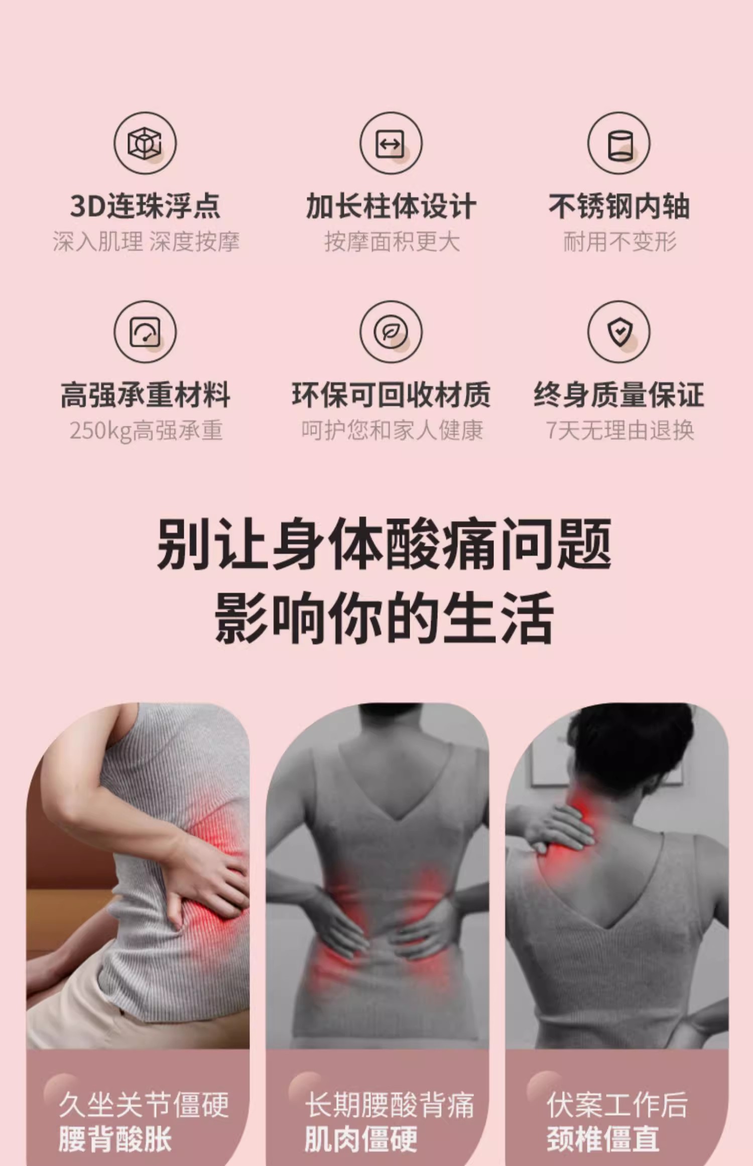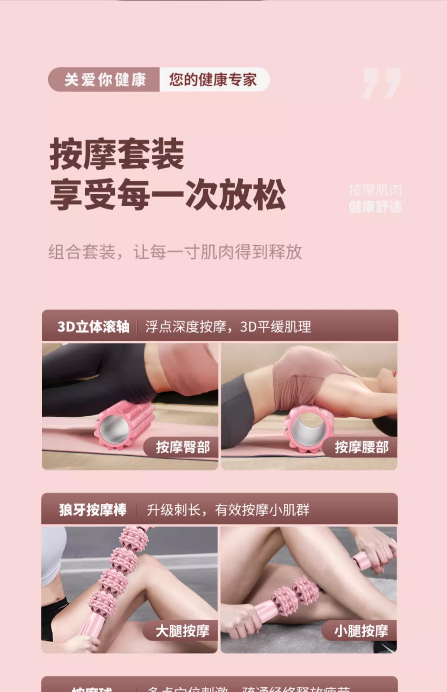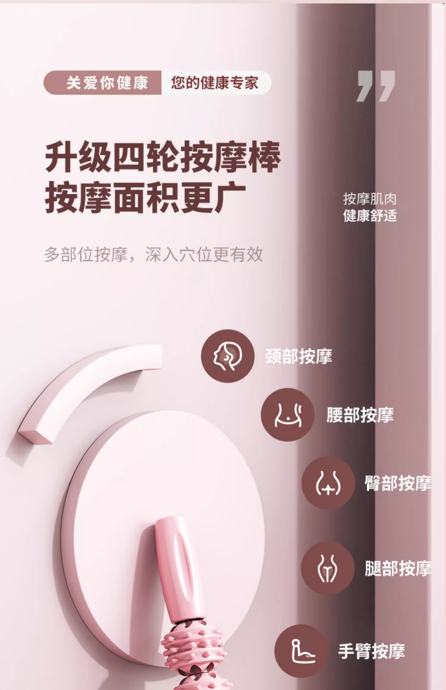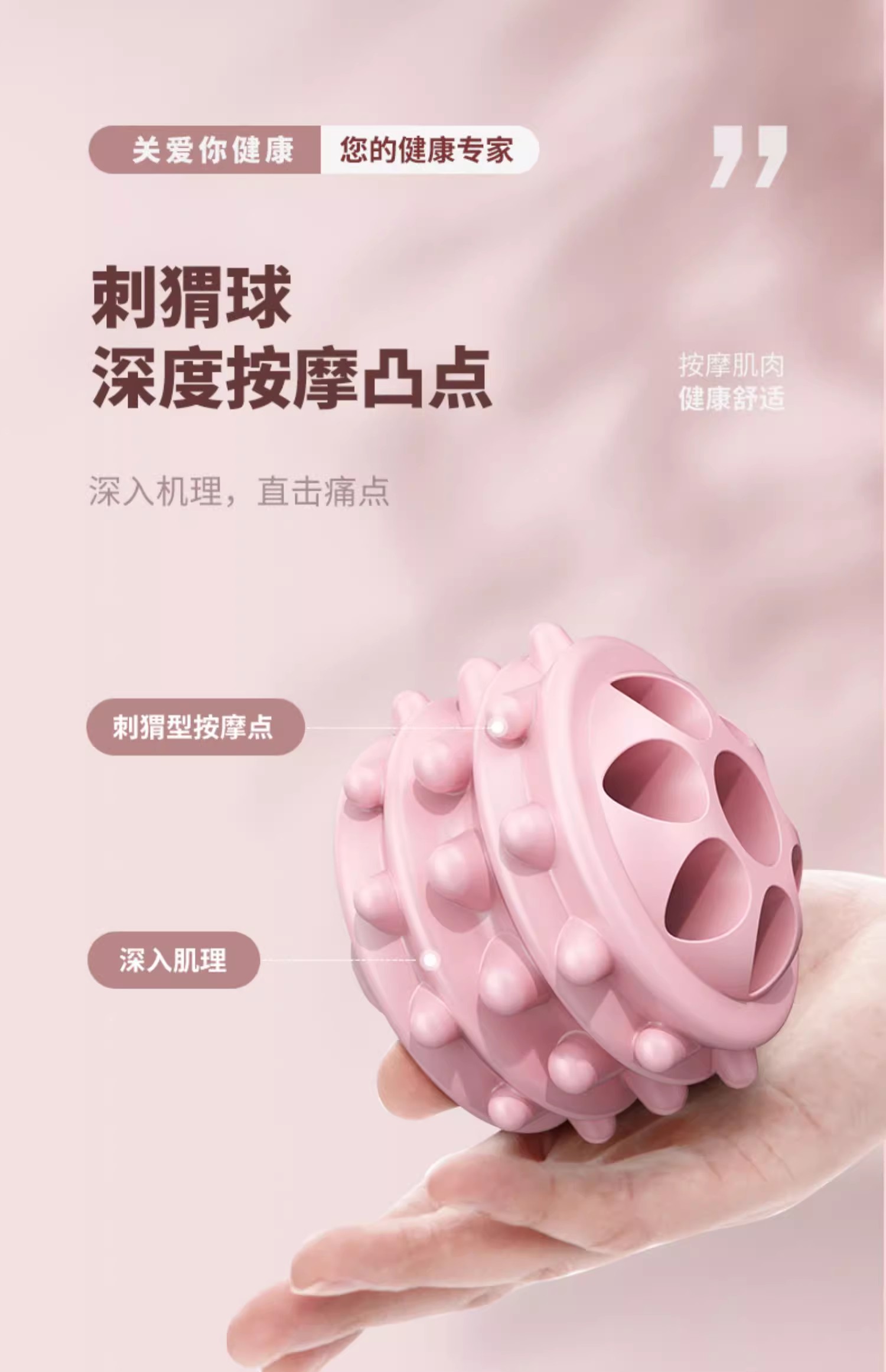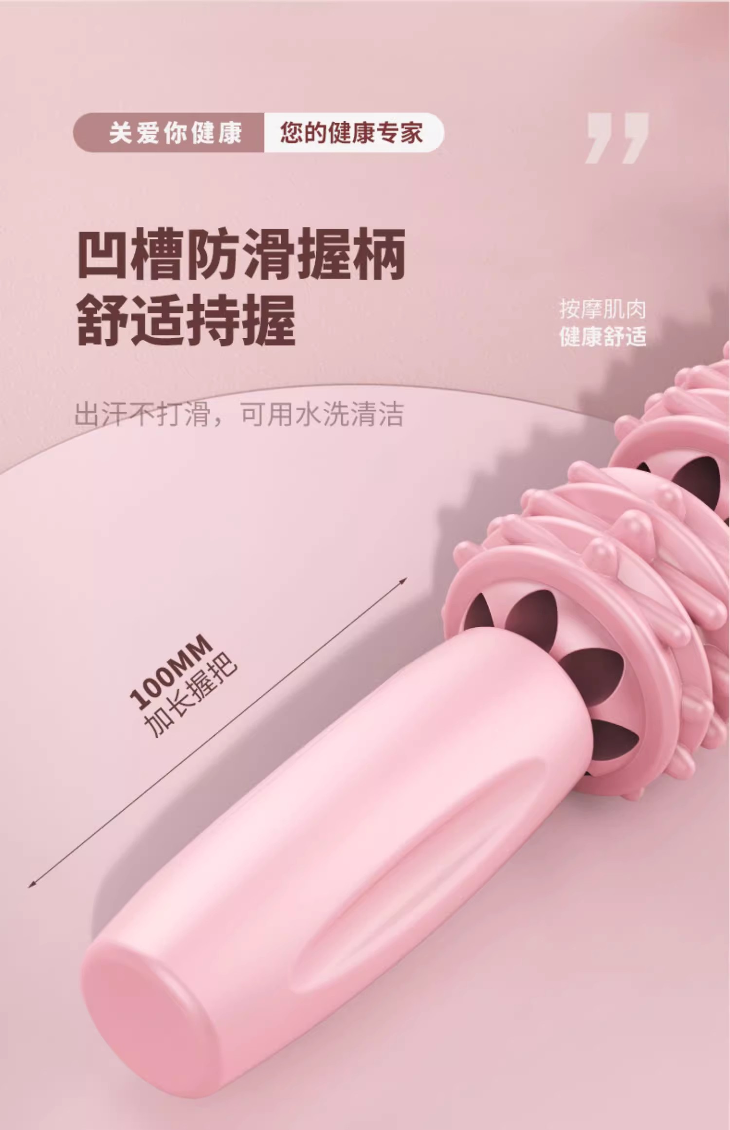 这款狼牙按摩棒是专门为颈部设计的,它的人体工学设计让按摩效果更贴合颈部线条,按摩针对性更强。此外,该按摩棒采用分区按摩设计,特别是针对颈部区域进行了独立设计。3D连珠按摩纹的交错设计,确保了按摩过程中不留死角,大小按摩点交错滚动工作,可以更深层次地放松肌肉。刺猬球凸点设计则能深入肌理,直击痛点,提供更深入的按摩体验。