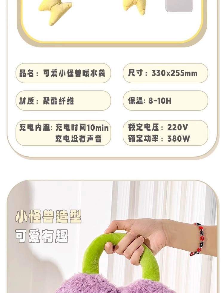 品牌:玫圣雅 颜色分类:【升级款】紫色小怪 升级智能断电充电器/国标防爆 产品类型:云朵热水袋