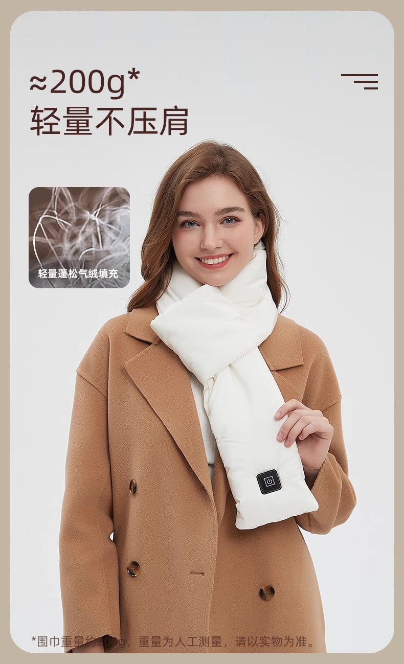 这款电发热围巾采用智能恒温发热技术,大面积的金属纤维发热片与智能芯片电源相结合,实现五秒速暖效果。它具备两小时持久发热的特点,为您带来温暖舒适的佩戴体验。此外,该围巾还配备了三档温度调节功能,只需一键即可轻松切换,让您随心掌控温度。