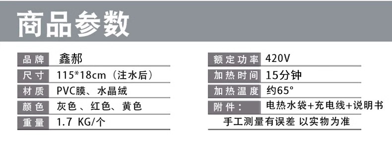 品牌:鑫郝 颜色分类:充电热水袋灰色 产品类型:暖手宝