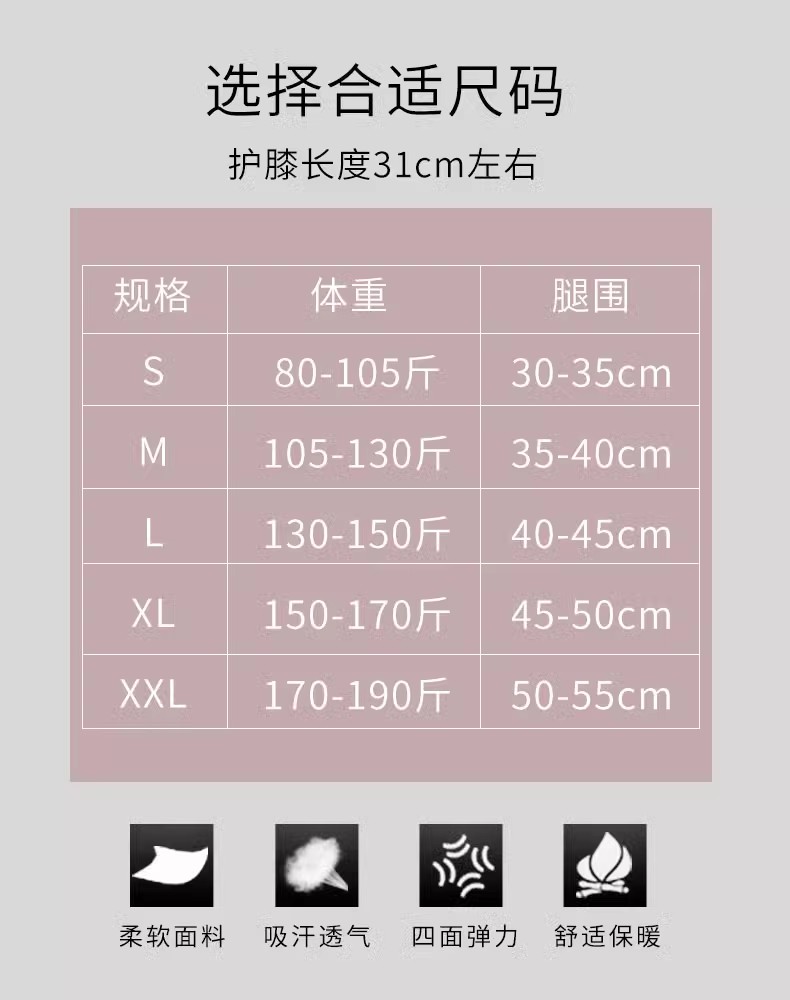 这款冬季保暖护膝采用舒适面料制成,亲肤无勒痕,为您提供极佳的穿戴体验。护膝内部加入薄绒,有效增加保暖效果,同时不易下滑,确保护膝始终贴合膝盖。此外,护膝还具备良好的弹力,让您在穿戴时能够感受到舒适的弹力与支撑,减轻膝盖压力。