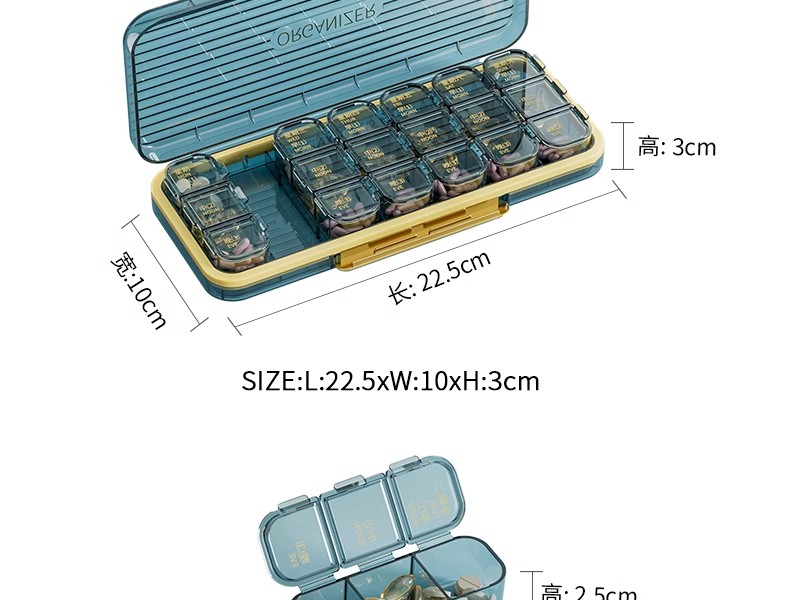品牌::夏岚花喜 颜色分类:【21格★食品级材质+三重密封】蓝色【旗舰款】 产品类型:药盒便携
