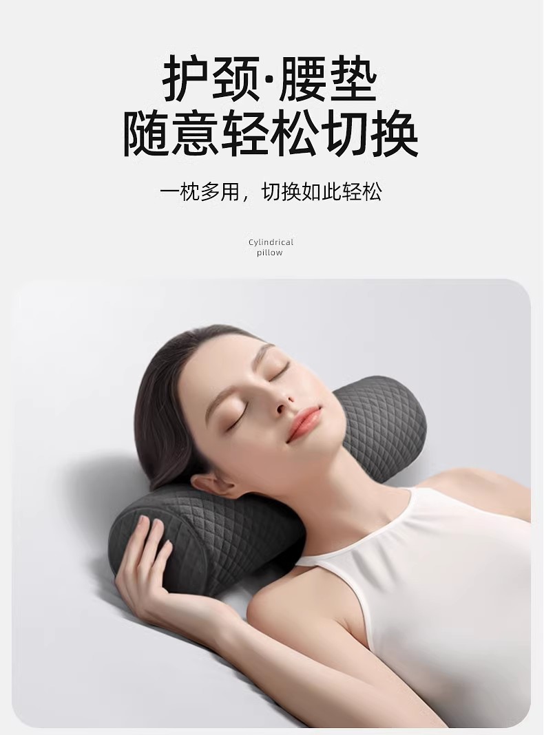 这款记忆棉圆柱枕头,经过精心设计的曲线完美贴合颈部曲线,为您提供极致的舒适感。它不仅是一个护颈枕,还可以作为腰垫使用,实现一物多用,方便您在不同场合随意切换使用方式。