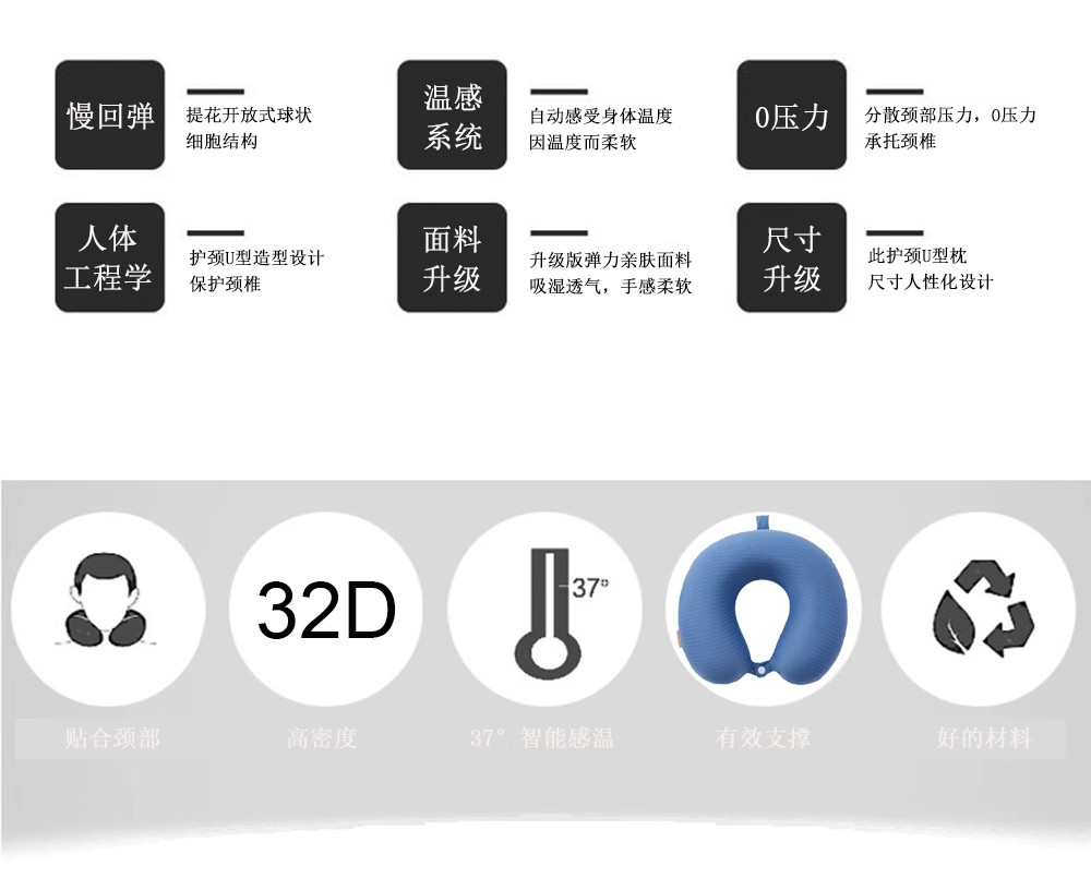 这款U型护颈枕是一款兼具美观与实用性的枕头,精致的外观让人一见倾心。它独特的小扣子设计,使枕头更加贴合颈部,有效支撑颈椎,提供舒适的睡眠体验。