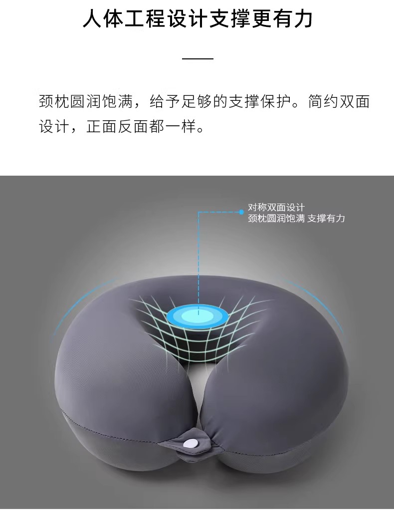 这款U型护颈枕头采用了双面可枕的设计,提供环绕支撑,让您的颈椎得到全方位的呵护。它采用柔软舒适的材质,专为颈椎不适的人群精心打造,帮助您舒缓生活和工作的压力。