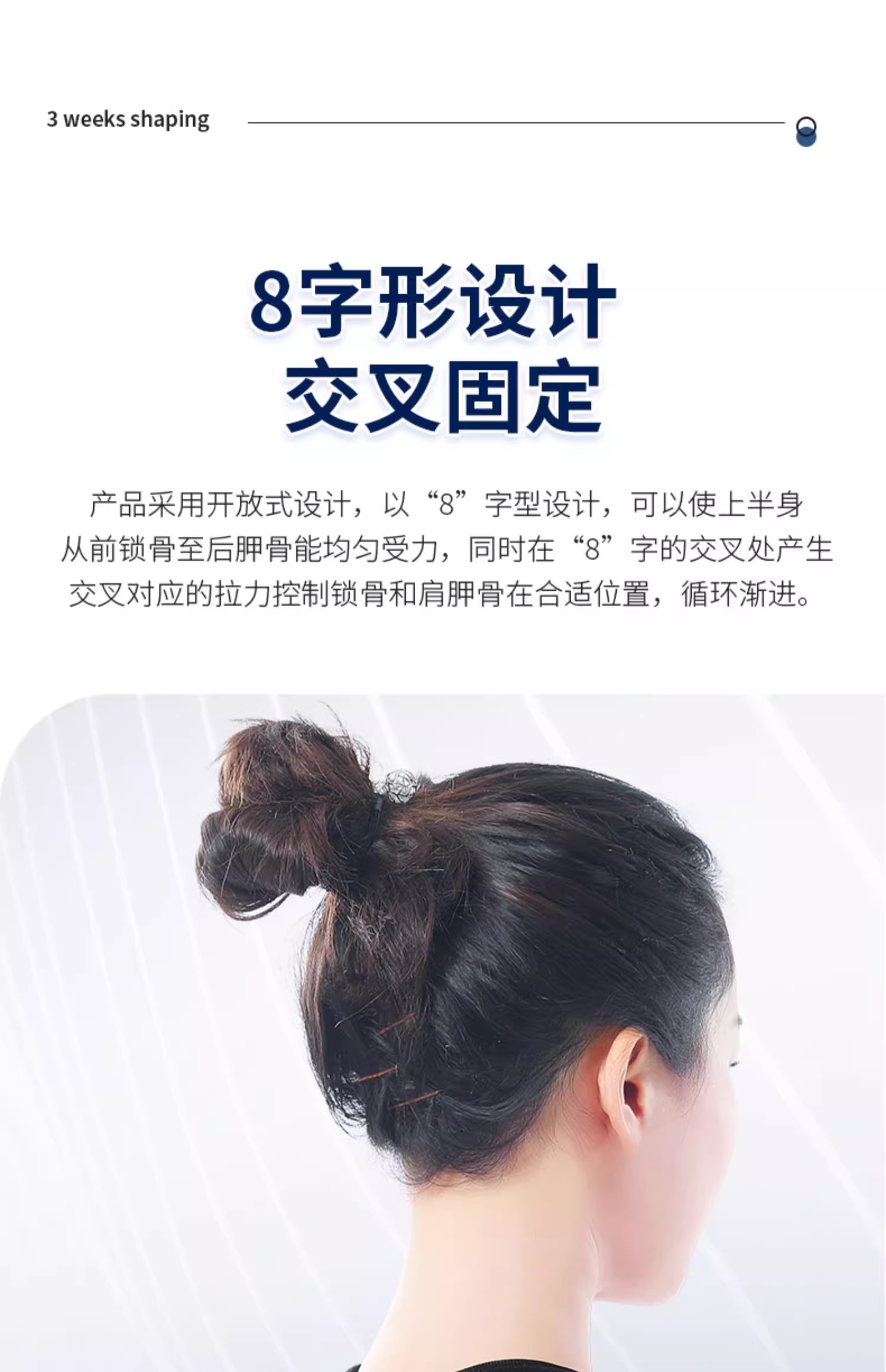 这款隐形防驼背矫正器根据人体结构精心设计,佩戴舒适,完美贴合肩胛骨,提供稳定的固定效果。通过三周循序渐进的穿戴,它能在无形中帮助您塑造良好的身姿。独特8字型设计,实现交叉固定,确保稳固不移位,同时松紧可调,避免勒肩膀的不适感。