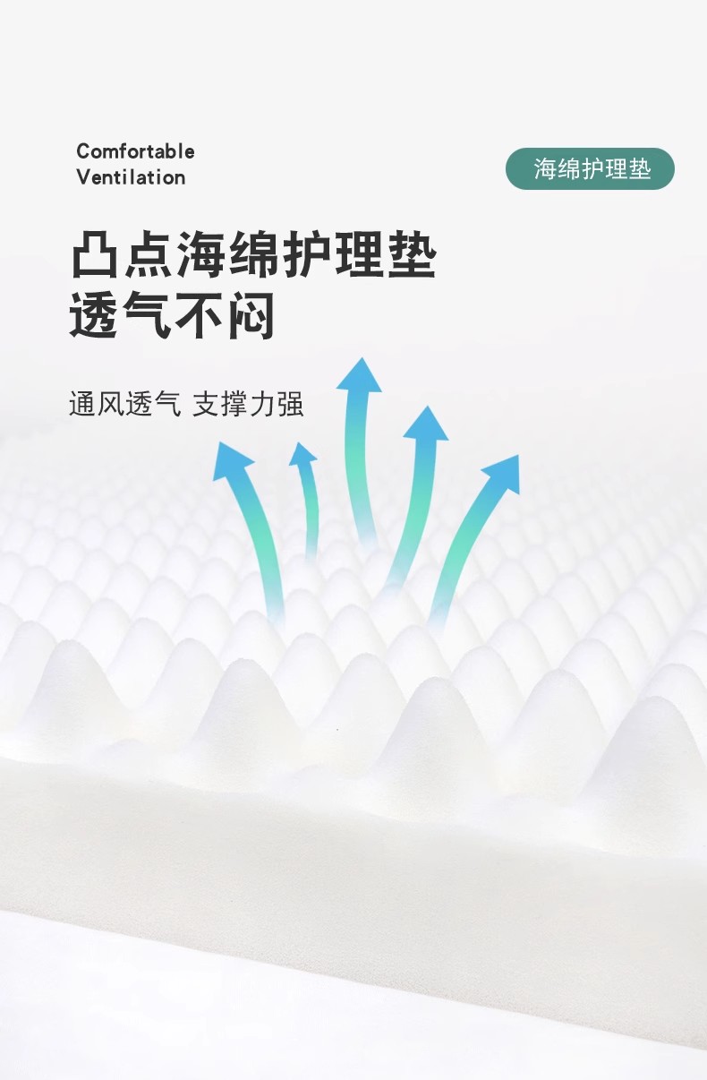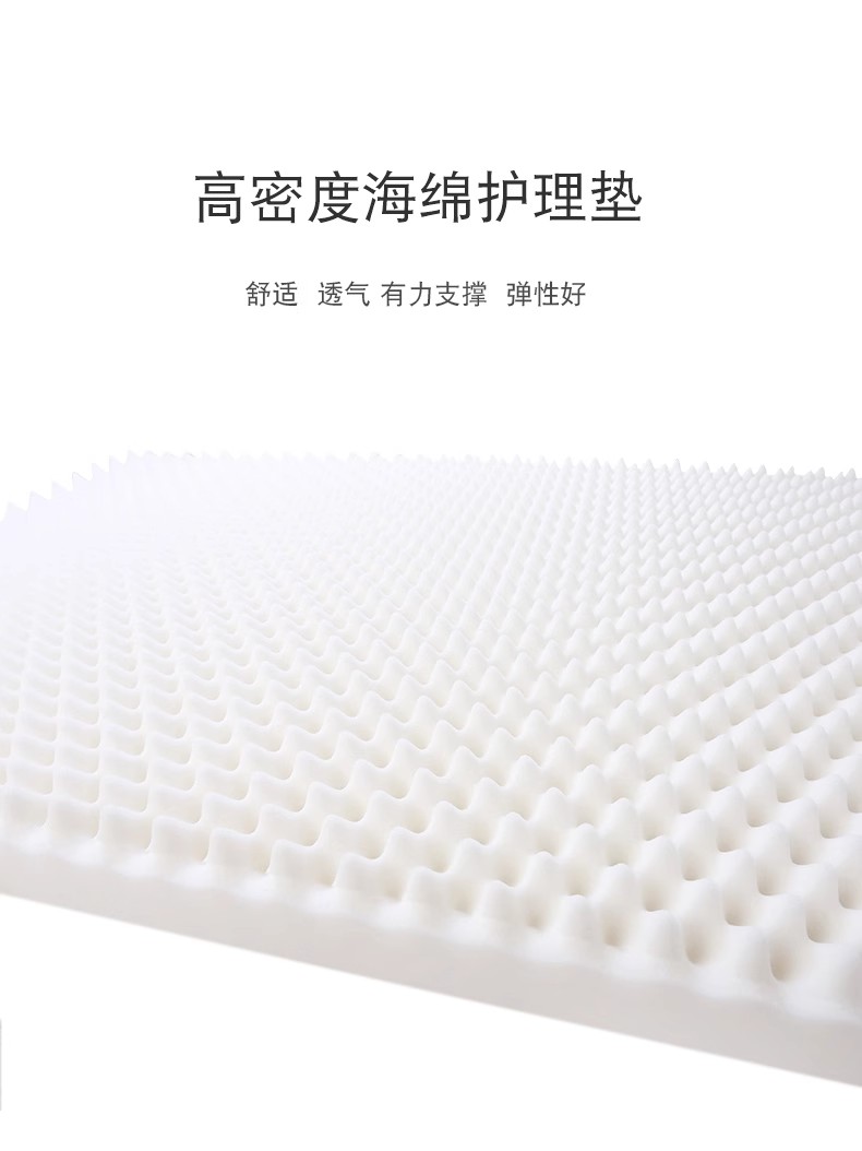 这款垫子采用高密度海绵垫,与人体接触的面积更大,能够更好地分散身体的压力,避免长时间压迫同一部位,从而减轻不适感和皮肤问题。凸点设计可以提供更强的支撑力,让老人躺得更加舒适自然。