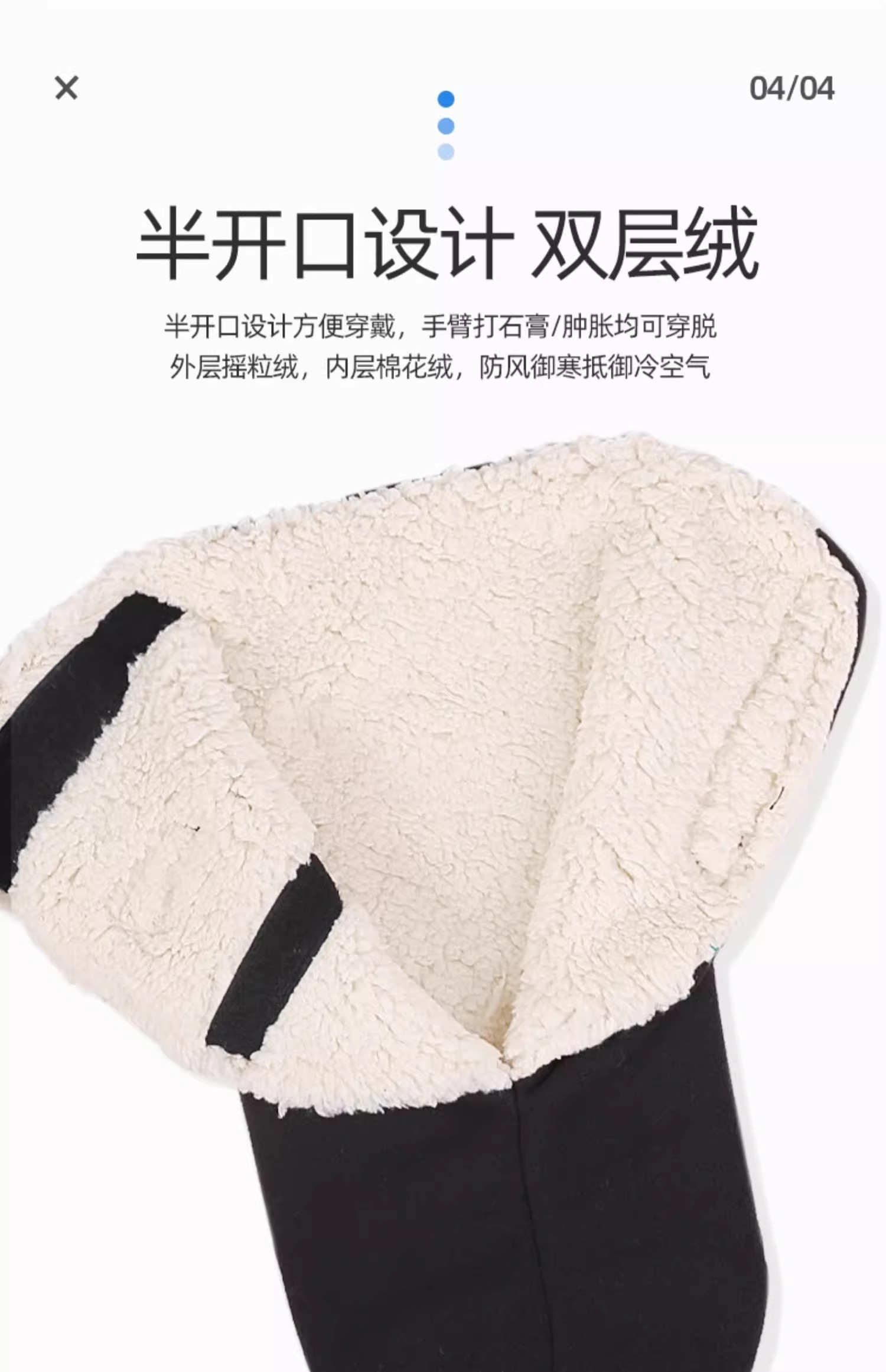 品牌:杰臣 颜色分类:长款双层绒【魔术贴设计】+吊带骨折保暖手套 产品类型:保健护具