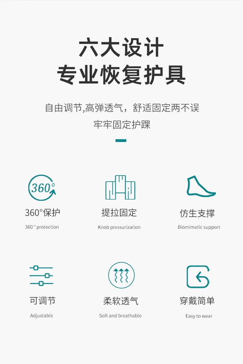 这款足下垂矫形器,具备高度的自由调节功能,不仅高弹透气,而且舒适固定,让您在使用过程中既不感到束缚,又能得到有效的支撑。它采用牢固的护踝设计,能够牢牢固定住您的脚踝,提供稳定的支撑。此外,全包一体内衬设计,不仅舒适防磨,还能有效地防止行走时足托与脚部之间的摩擦,让您穿戴更加舒适。